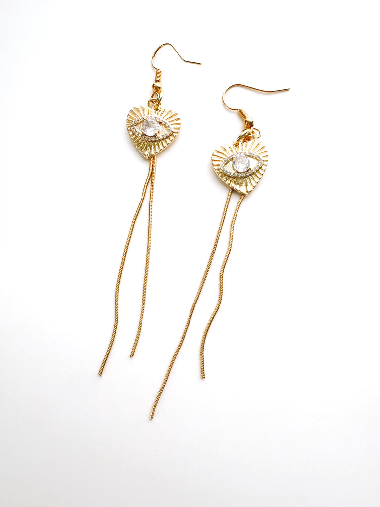 Evil Eye Gem Dangles // Gold