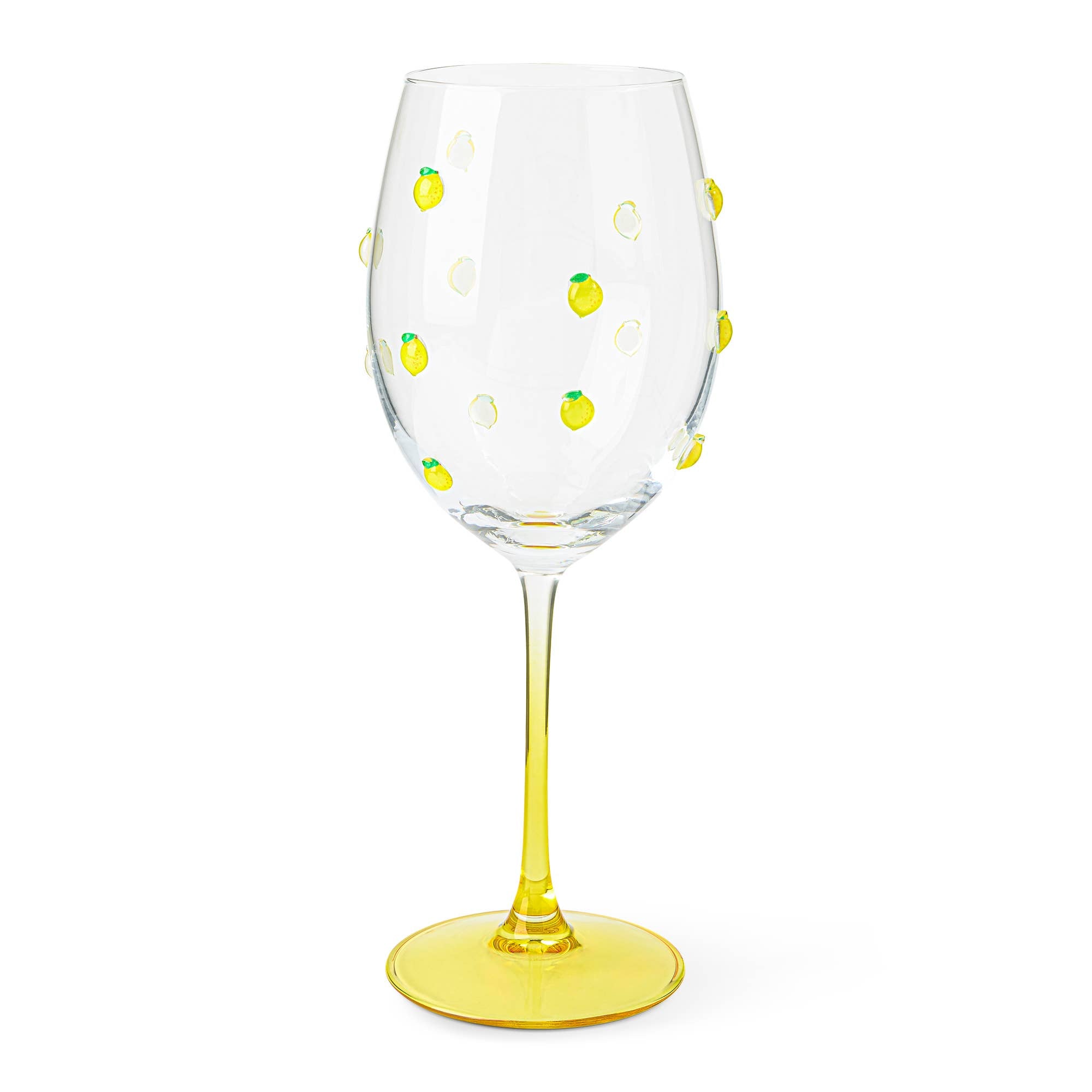 Fun and fruity stemmed wine glass with 3D lemon icon. The perfect addition to any bar cart or fun table setting.