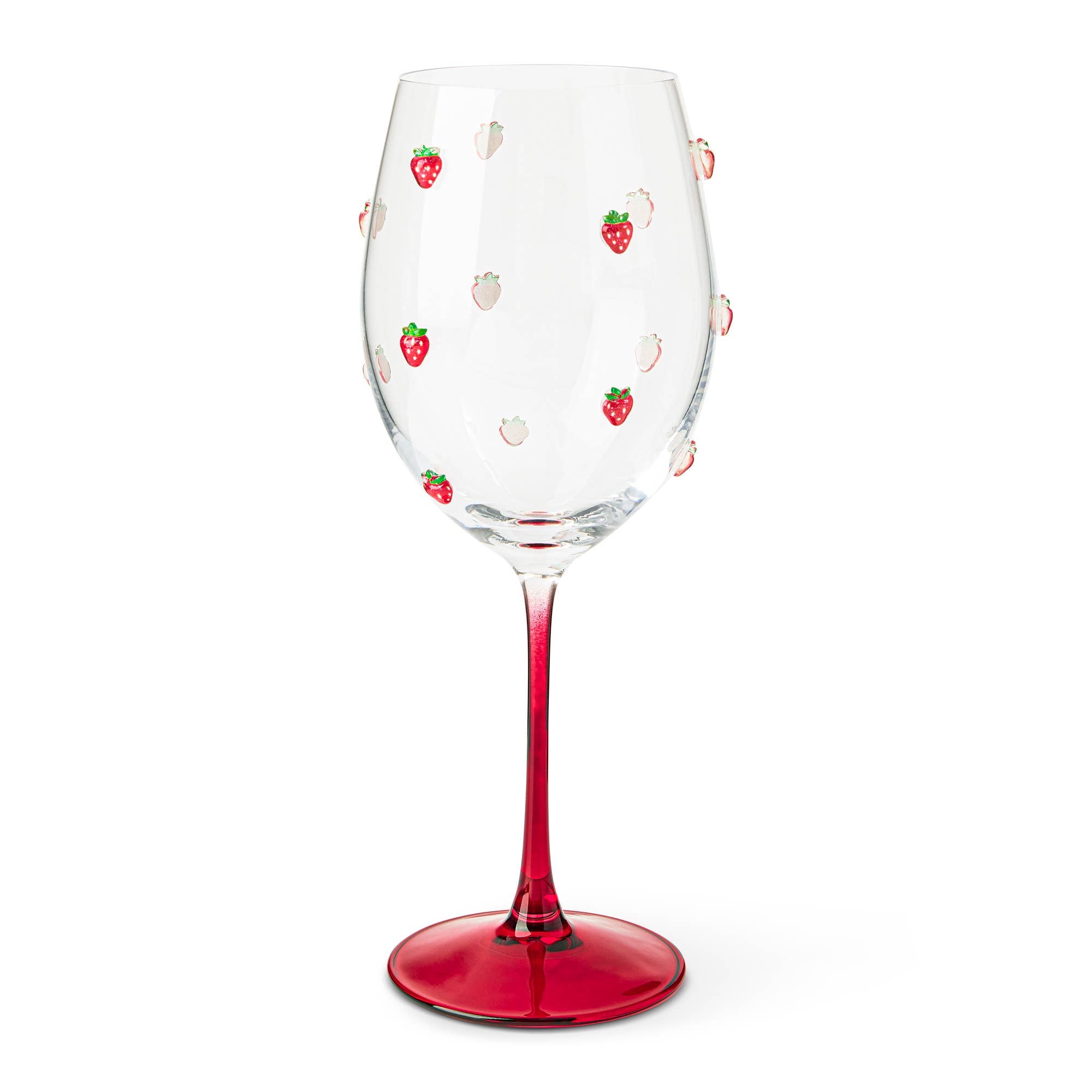 Fun and fruity stemmed wine glass with 3D Strawberry icon. The perfect addition to any bar cart or fun table setting.