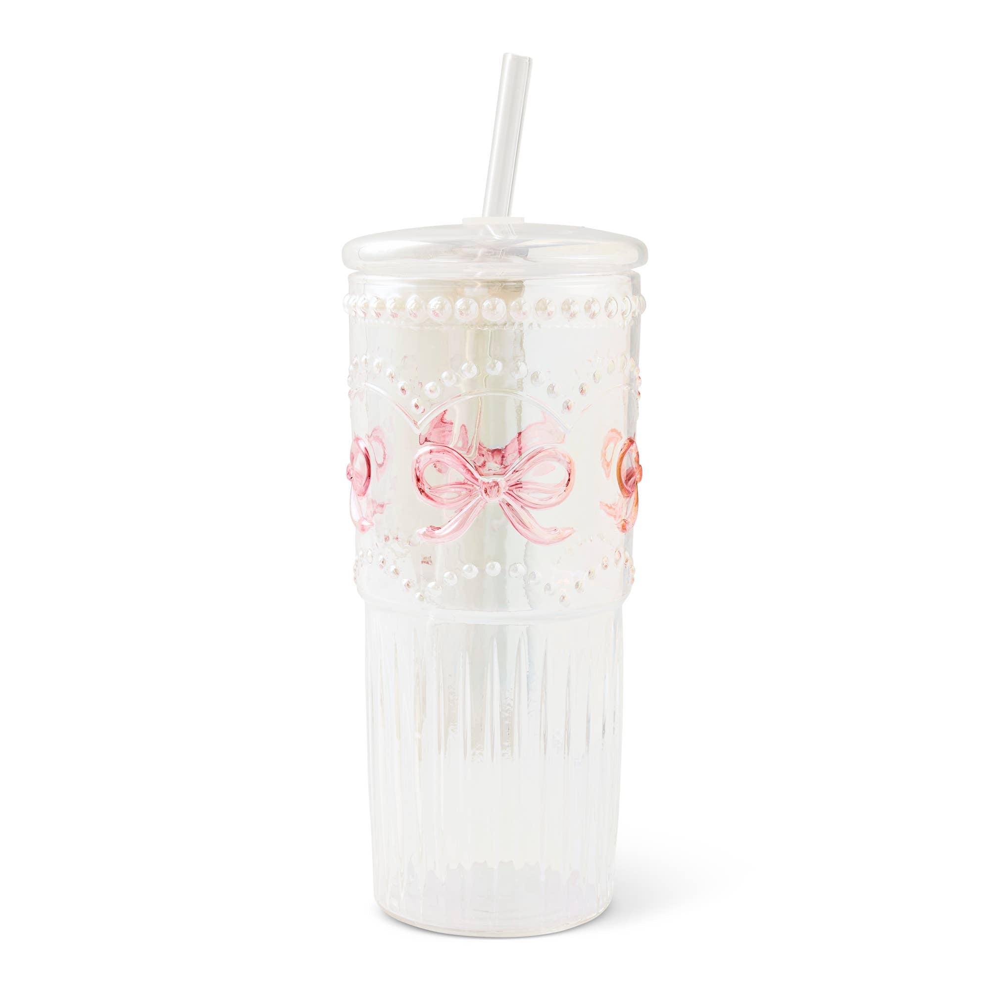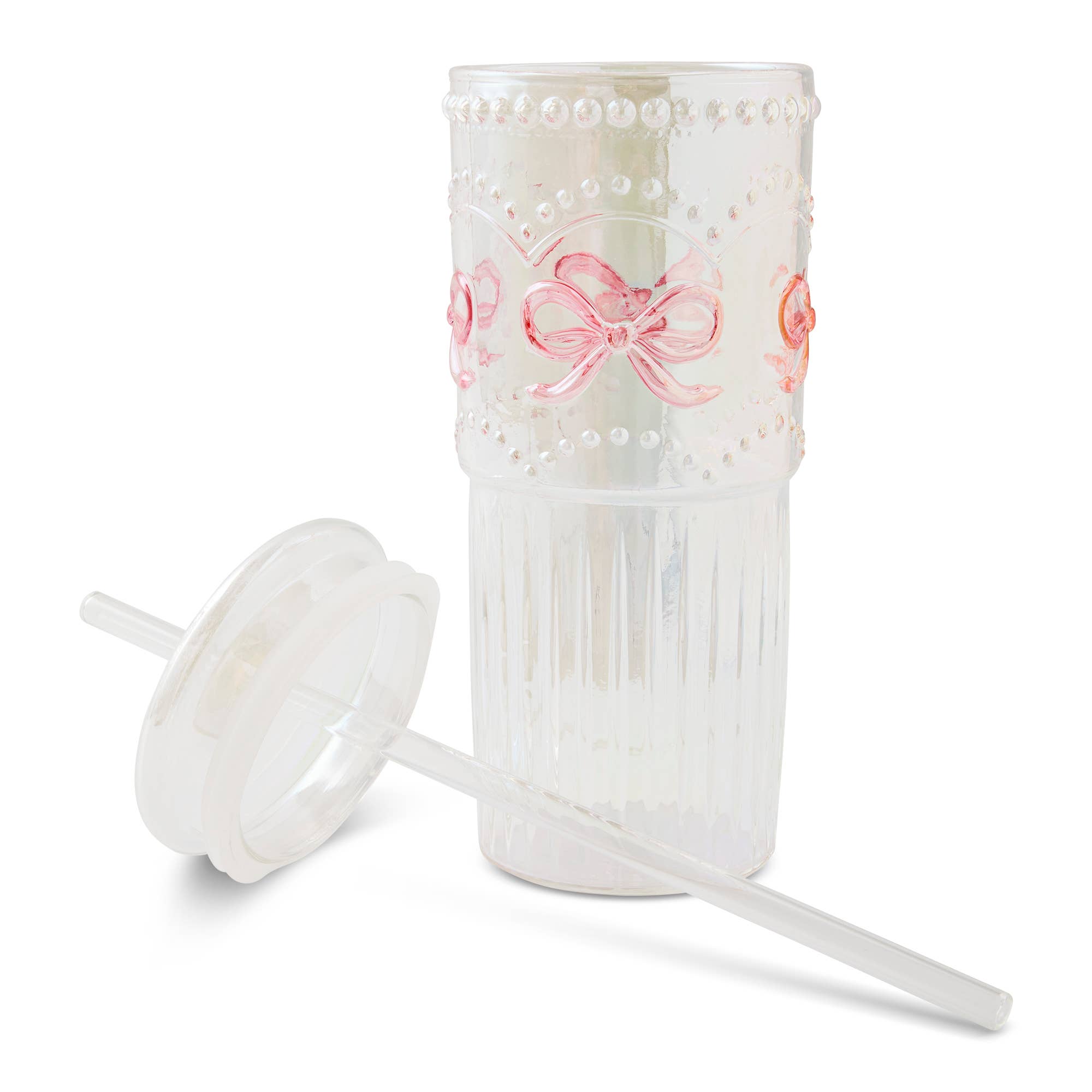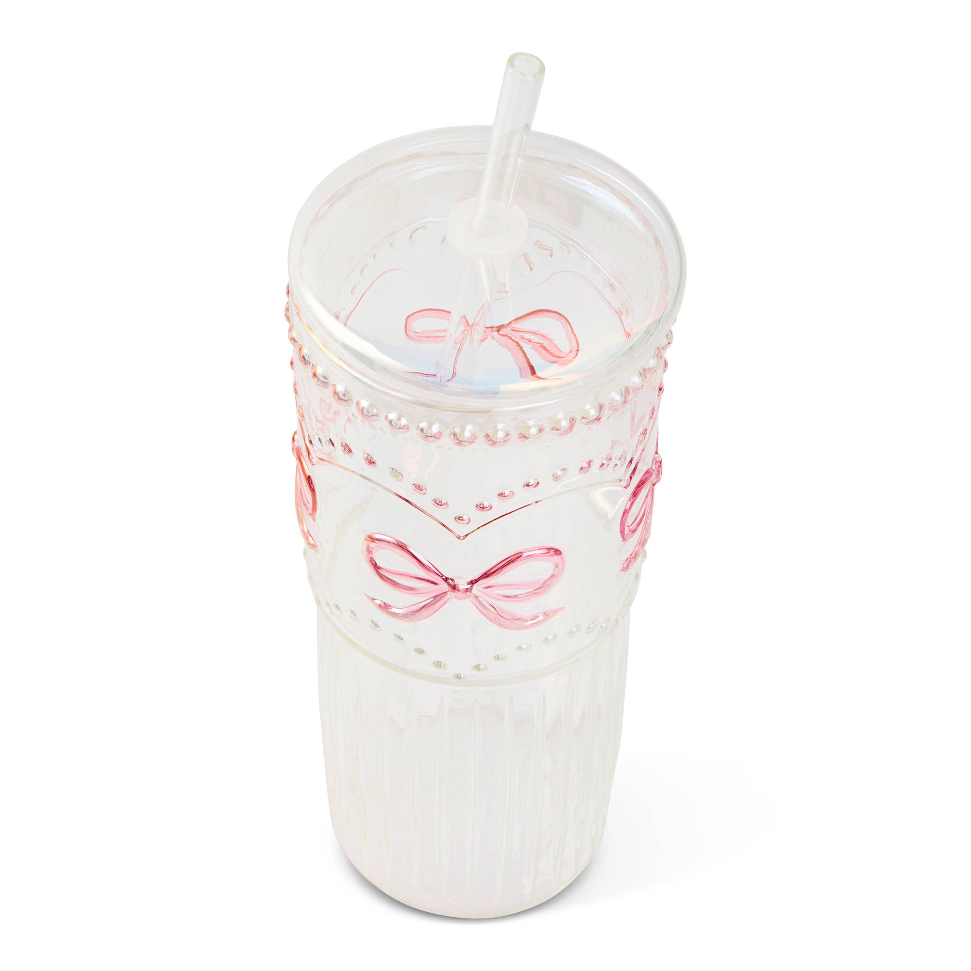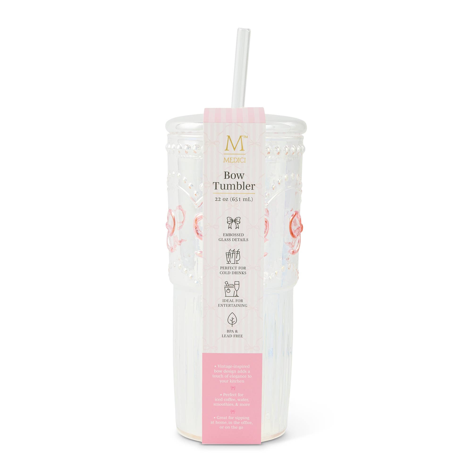 Textured glass tumbler with bow embossed icons. Perfect for gifting!