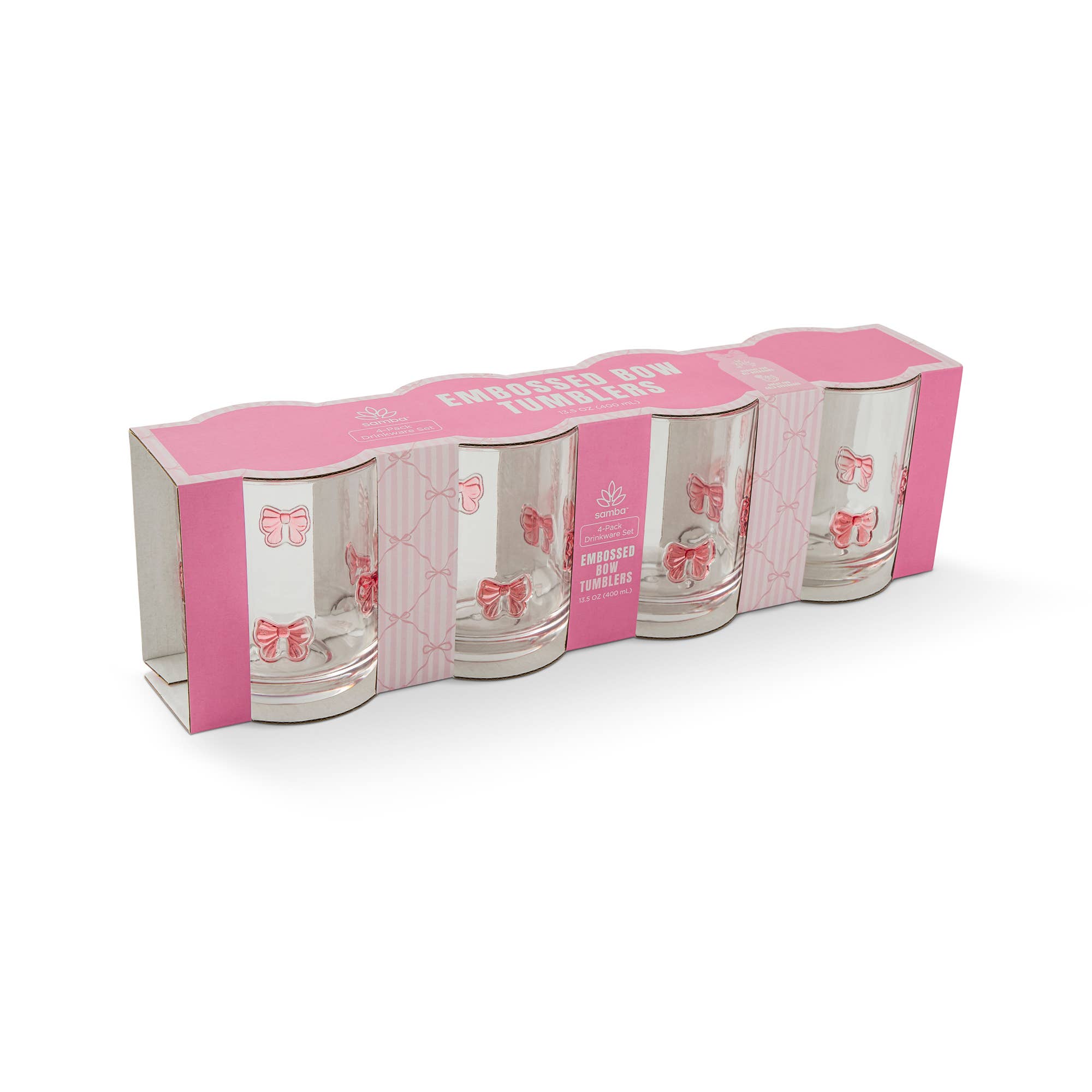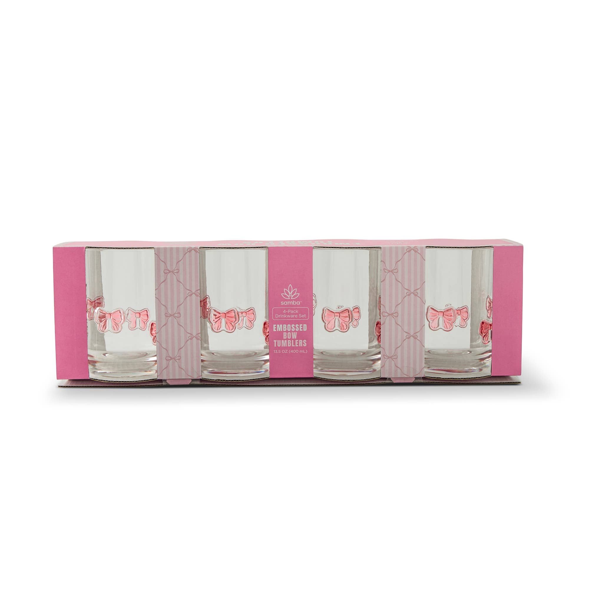 4pk 13.5oz Embossed Tumbler - Pink Bows. Acrylic Icon Tumblers