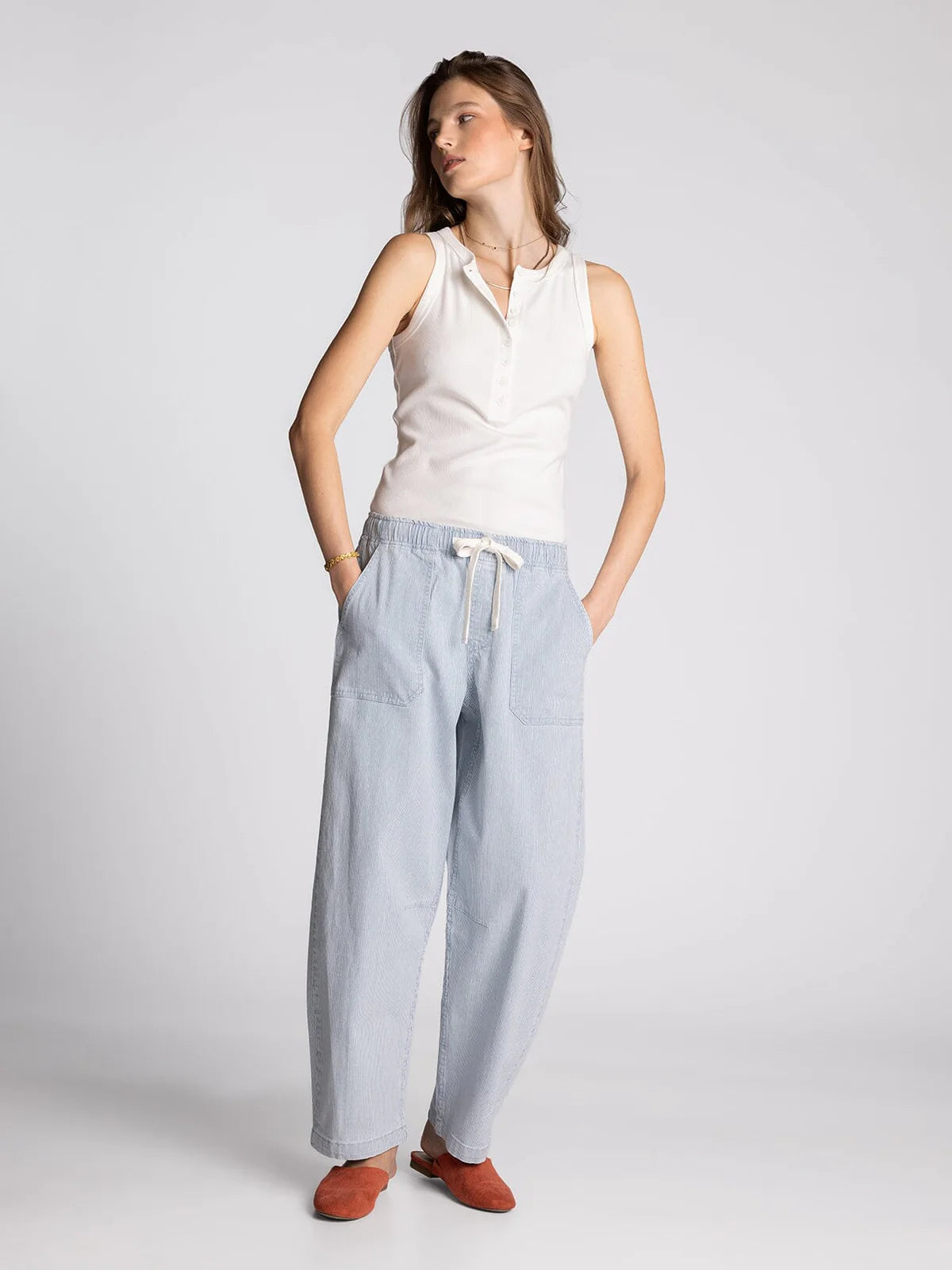 Avril Striped Pull-on Pants // Blue