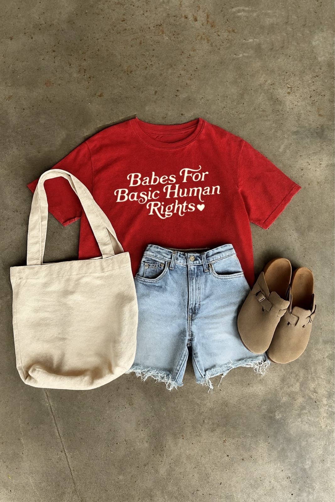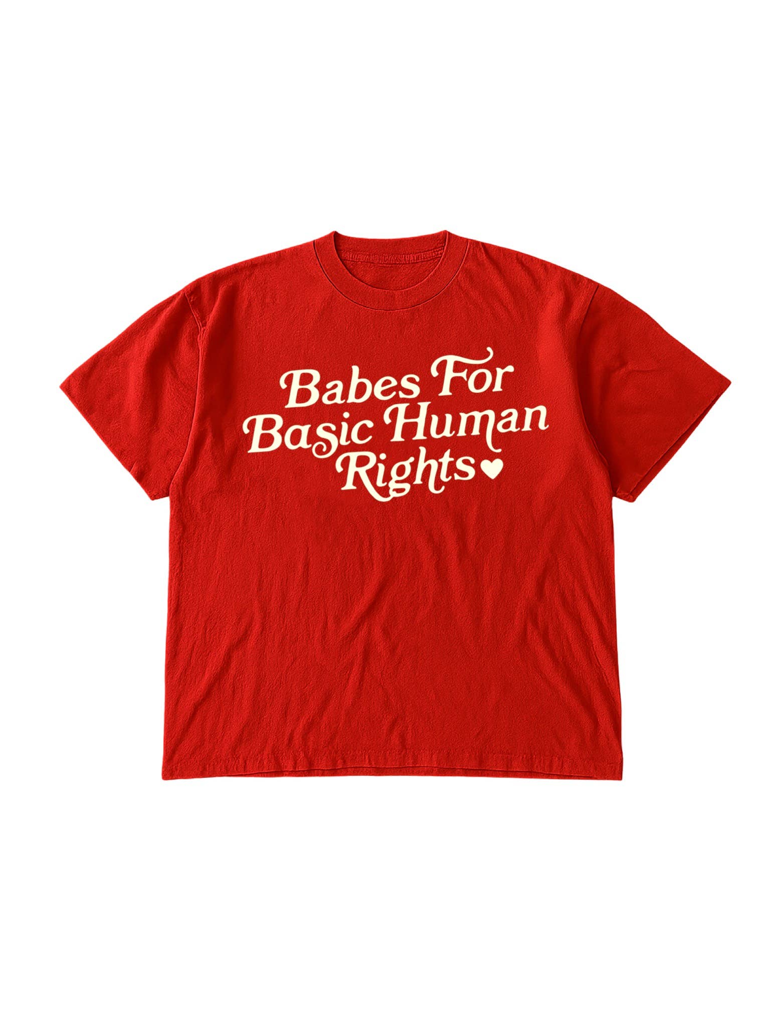 Babes for Basic Human Rights // Cherry Red - S is backordered and will ship as soon as it is back in stock.