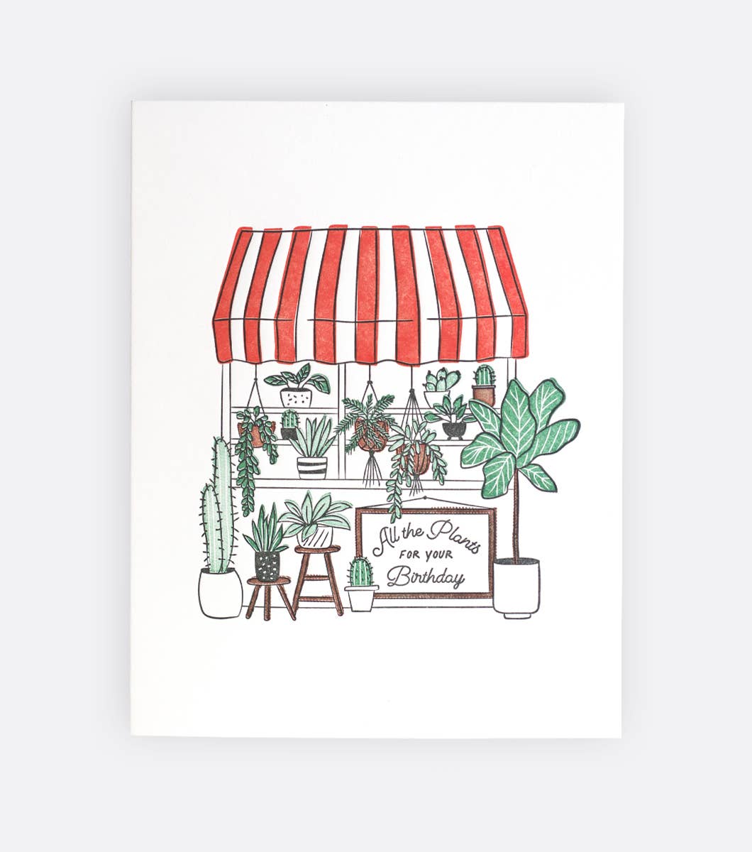 Perfect for pairing with a houseplant gift, our Plant Shop Letterpress Greeting Card celebrates your favorite plant lover’s special day with charm and greenery-inspired cheer.