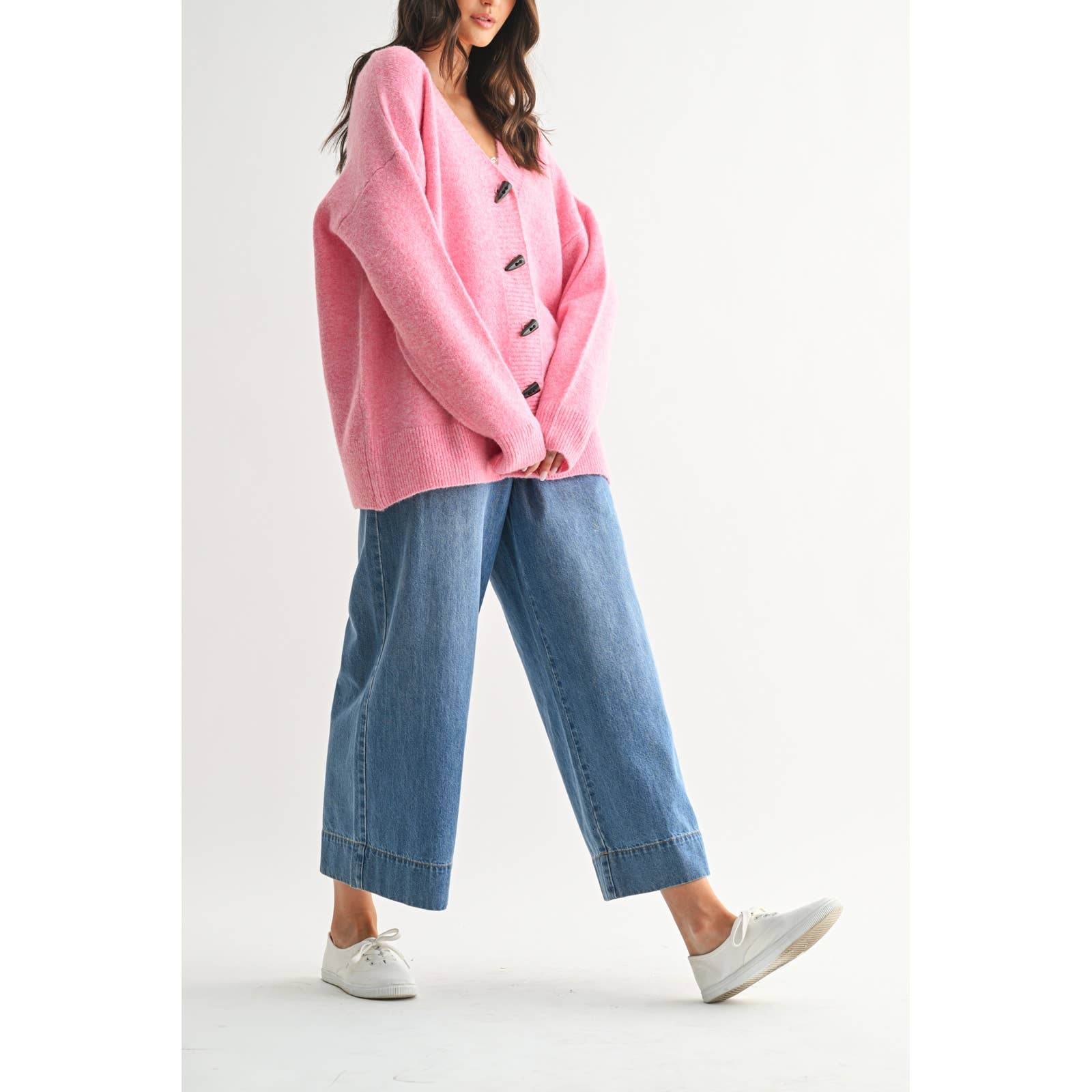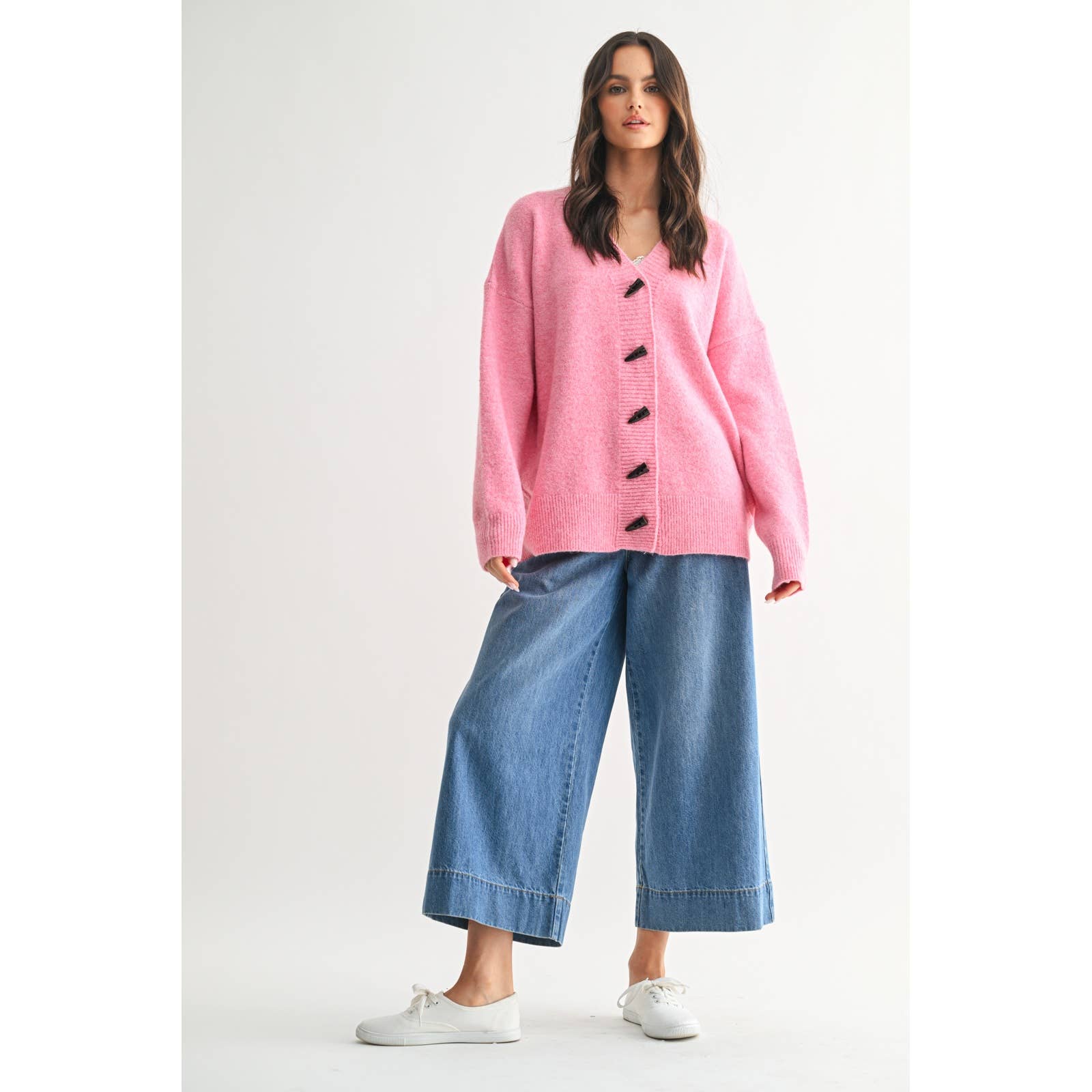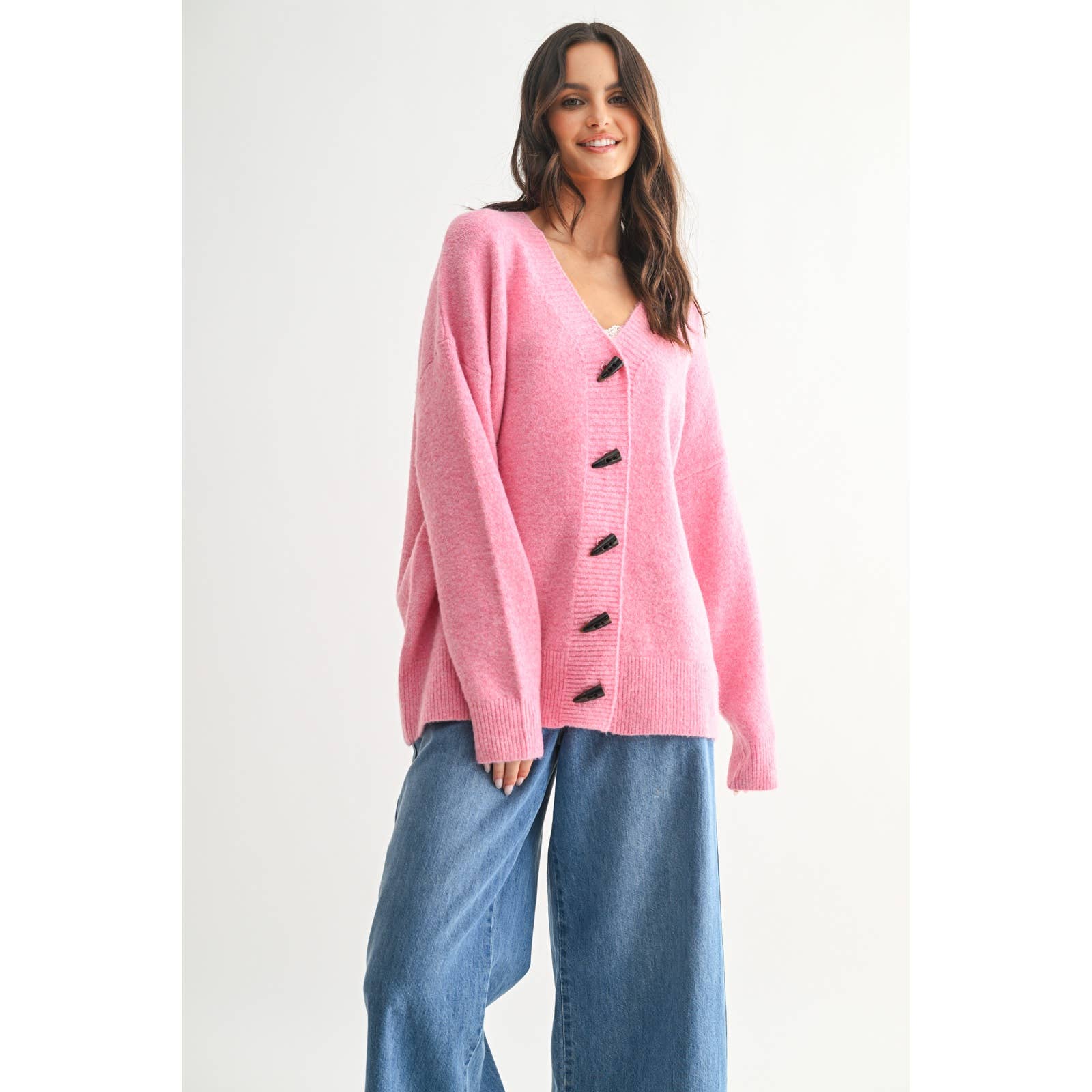 Soft Brushed Toggle Sweater Cardigan // Hibiscus