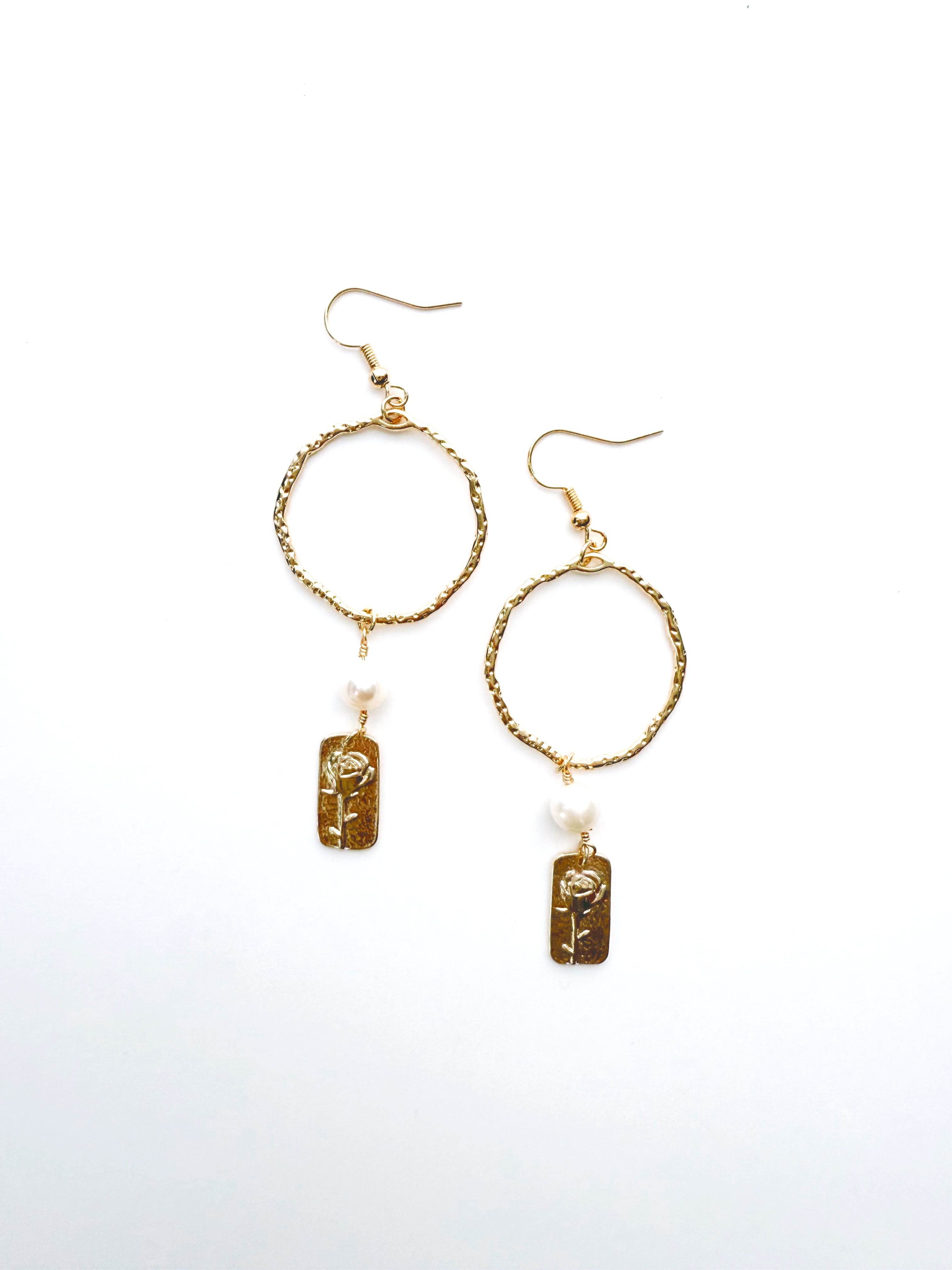 Gorgeous drop earrings with saltwater pearls and flower charms. Made in-house at Jenny in the City.