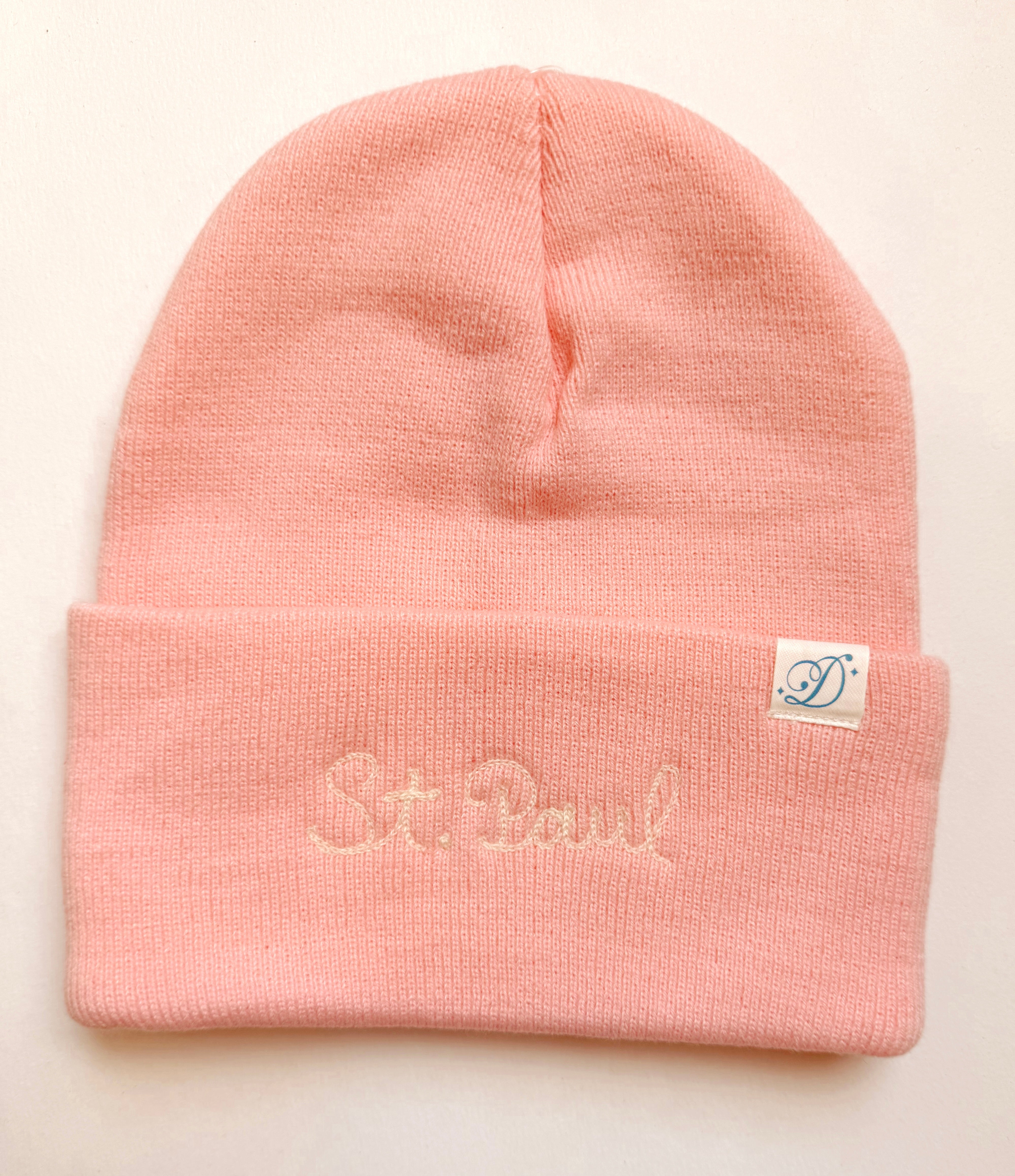 St. Paul Chainstitch Embroidered Beanie // Light Pink