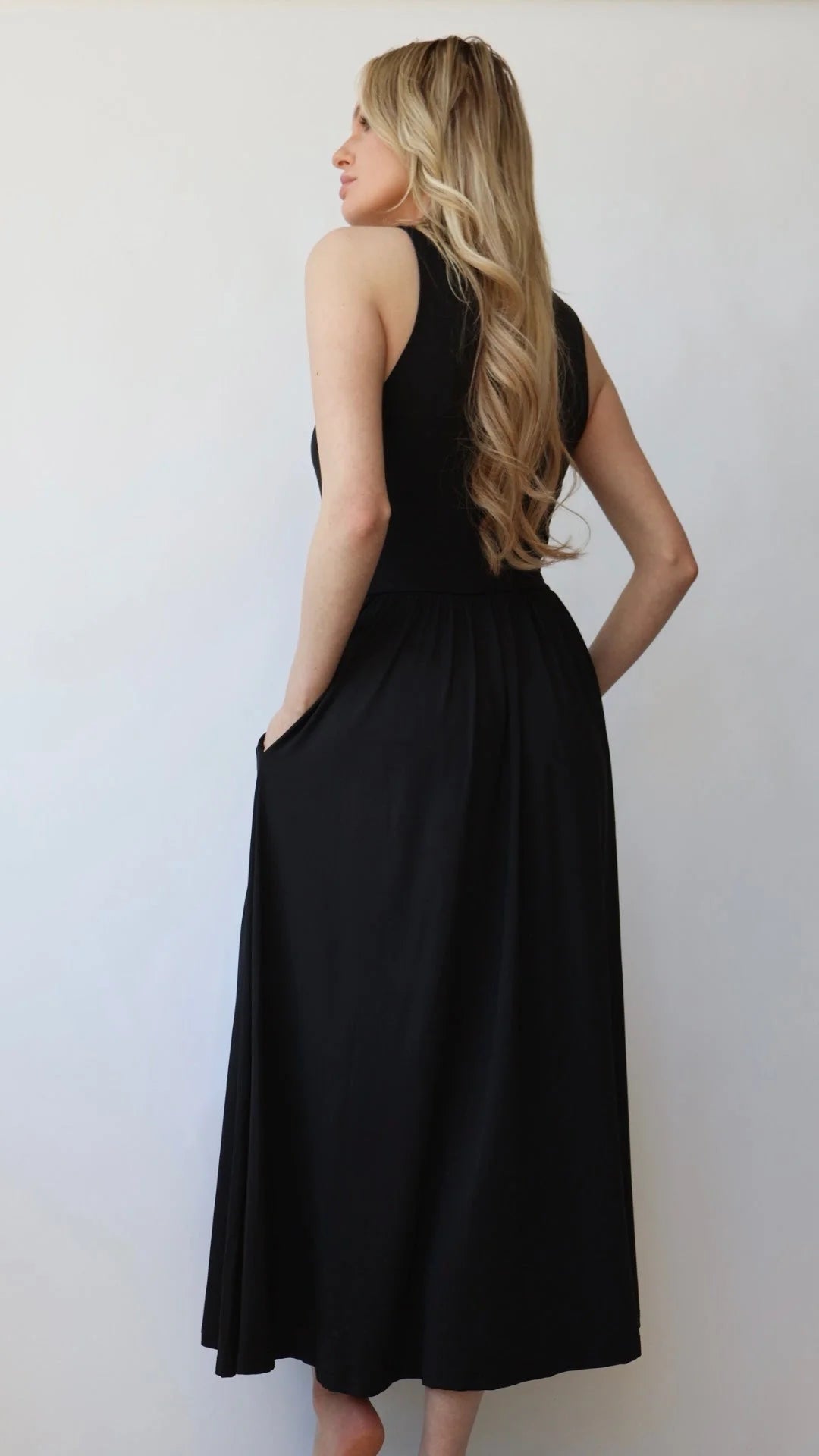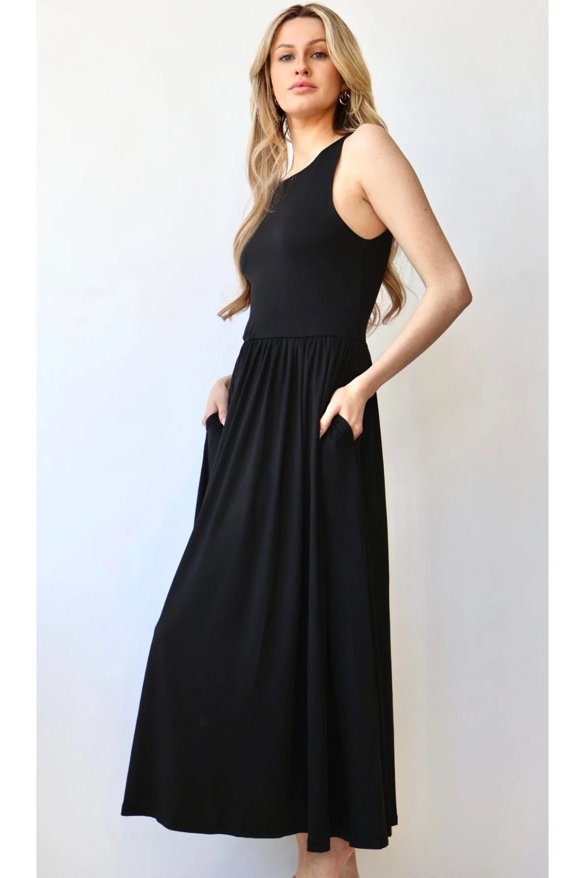 Elena High Crew Neck Midi Dress, A fashion-forward fusion of elegance and unparalleled comfort. This dress ticks all the boxes. It’s slimming silhouette accents the slimmest part of the waist while gathering starts at just the right spot to hide the midsection. Oh…Did we mention it has pockets?