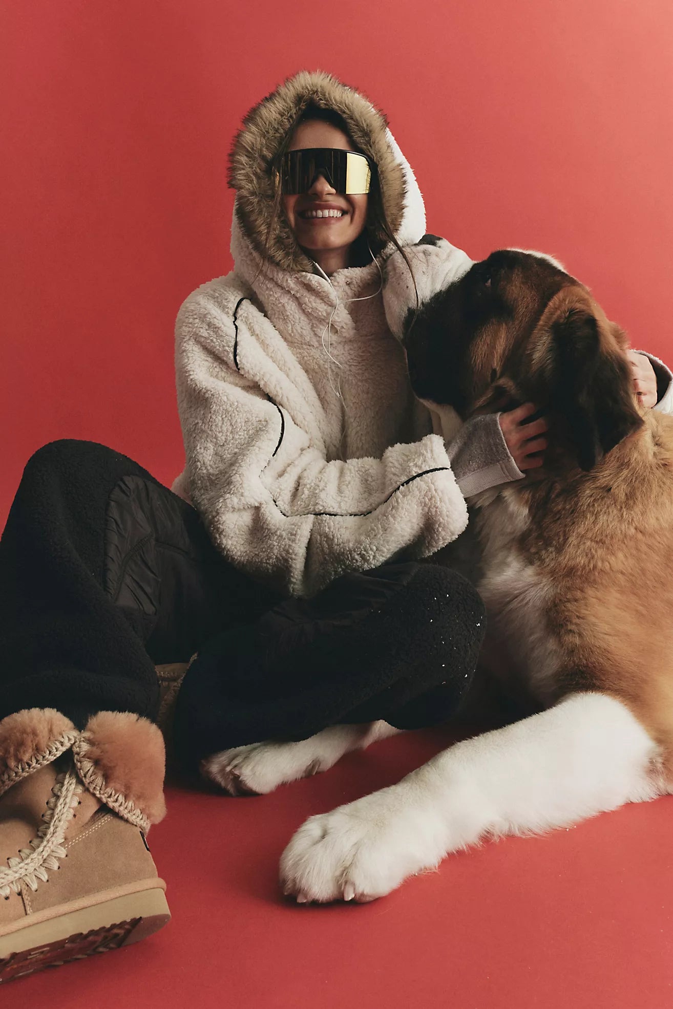 Features: Soft fleece with a warm, cozy feel; snap-button closure; pullover hood with elasticized trim; 2-piece dolman sleeves; adjustable hem with encased bungee cord; buti logo at back.