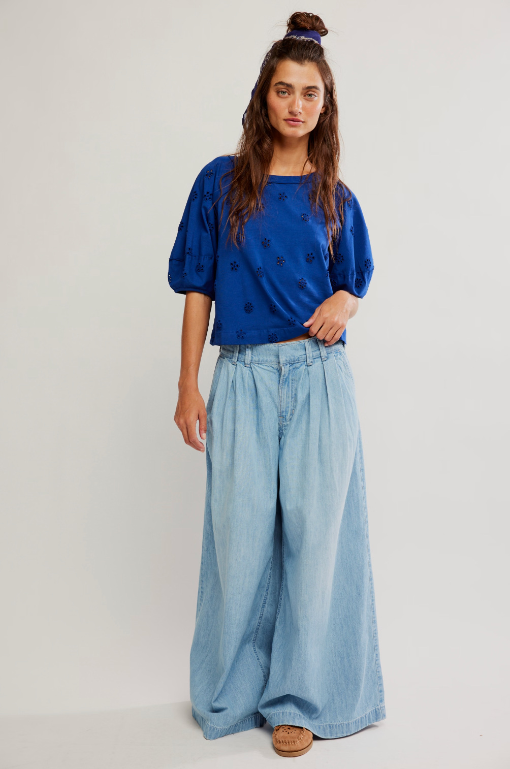Free People Jessie Eyelet Tee // Cobalt