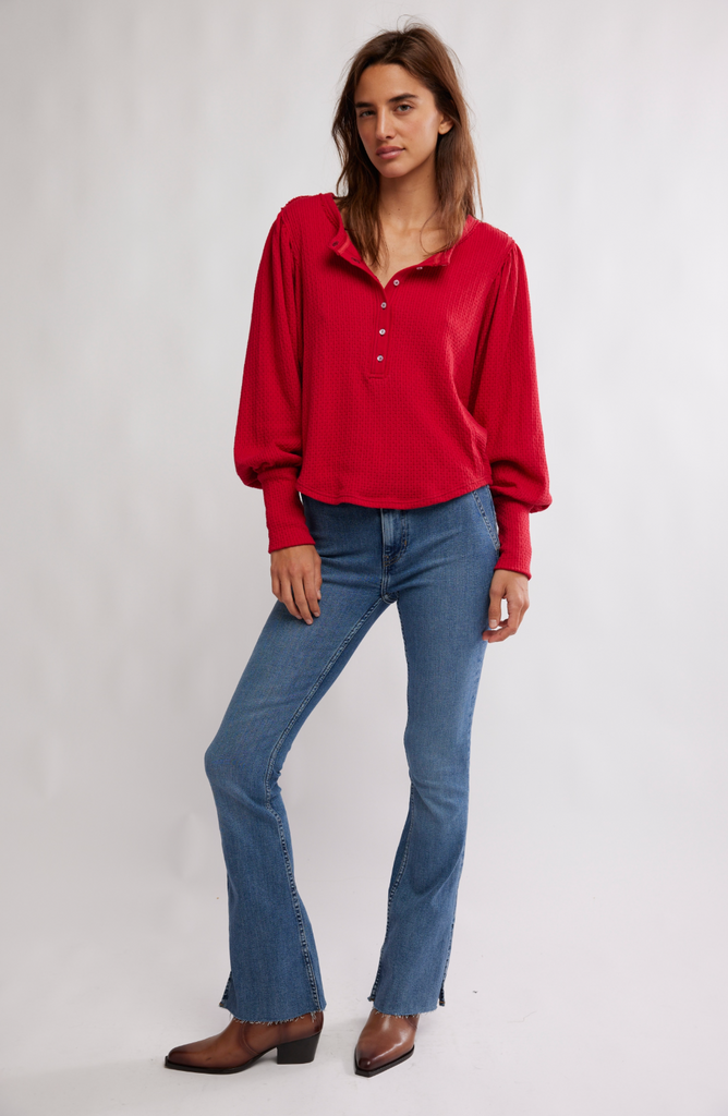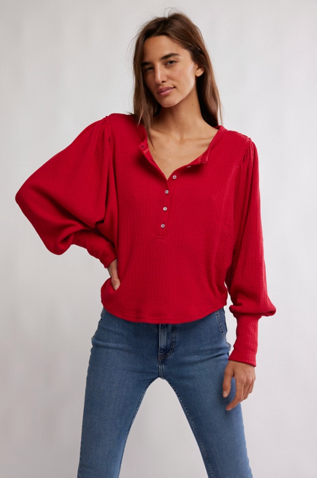 Voluminous sleeves instantly elevate this knit henley from We The Free, giving it that crafty detail you can only find here.