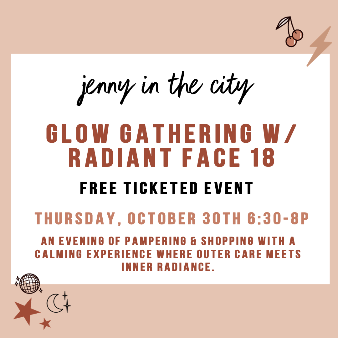 Join us for the first Glow Gathering with Dawn Morningstar-Owner of Radiant Face 18, and Licensed Advanced Practice Esthetician Barb Byrd for a night of pampering, relaxation, and after-hours shopping on Thursday, October 30th from 6:30-8:00pm.
