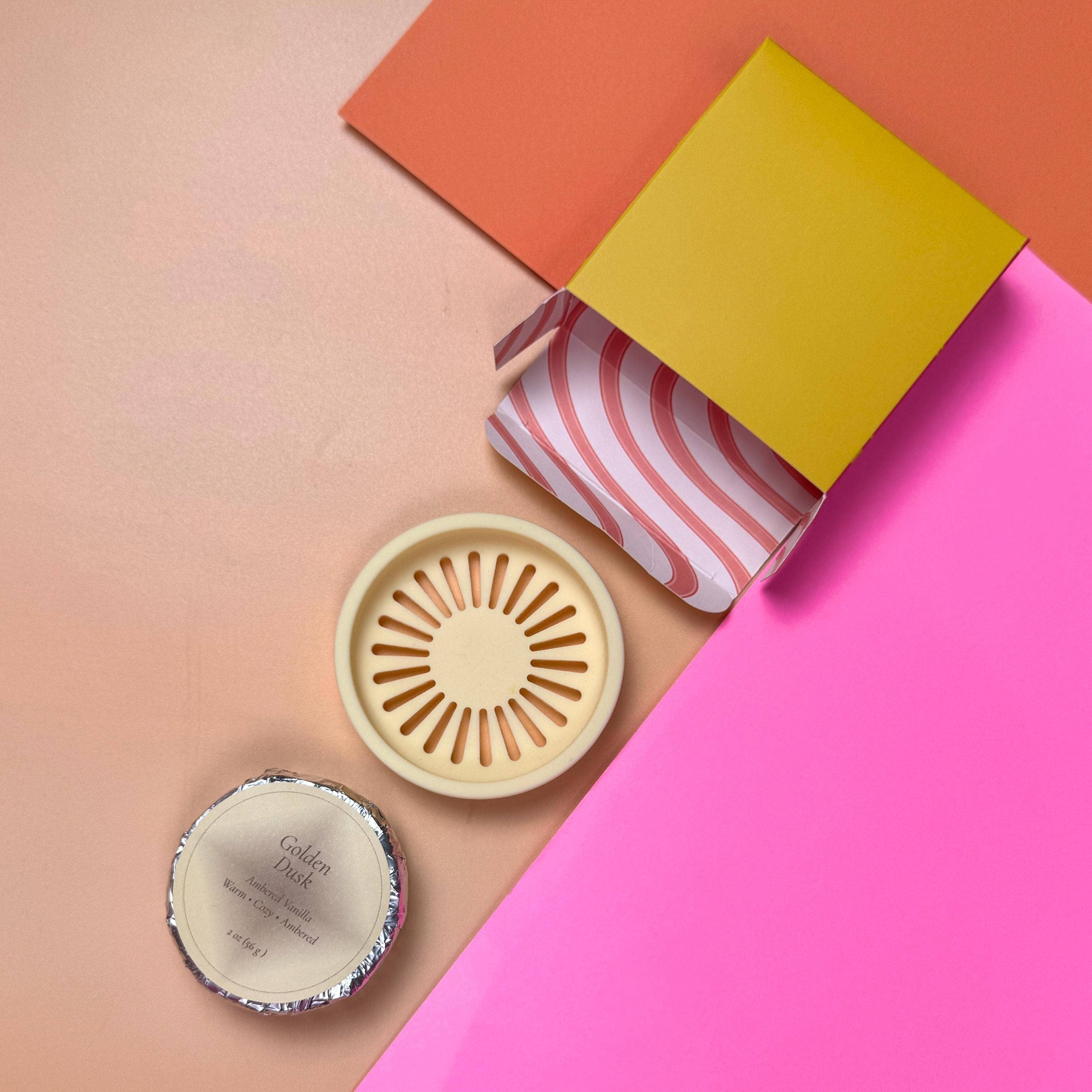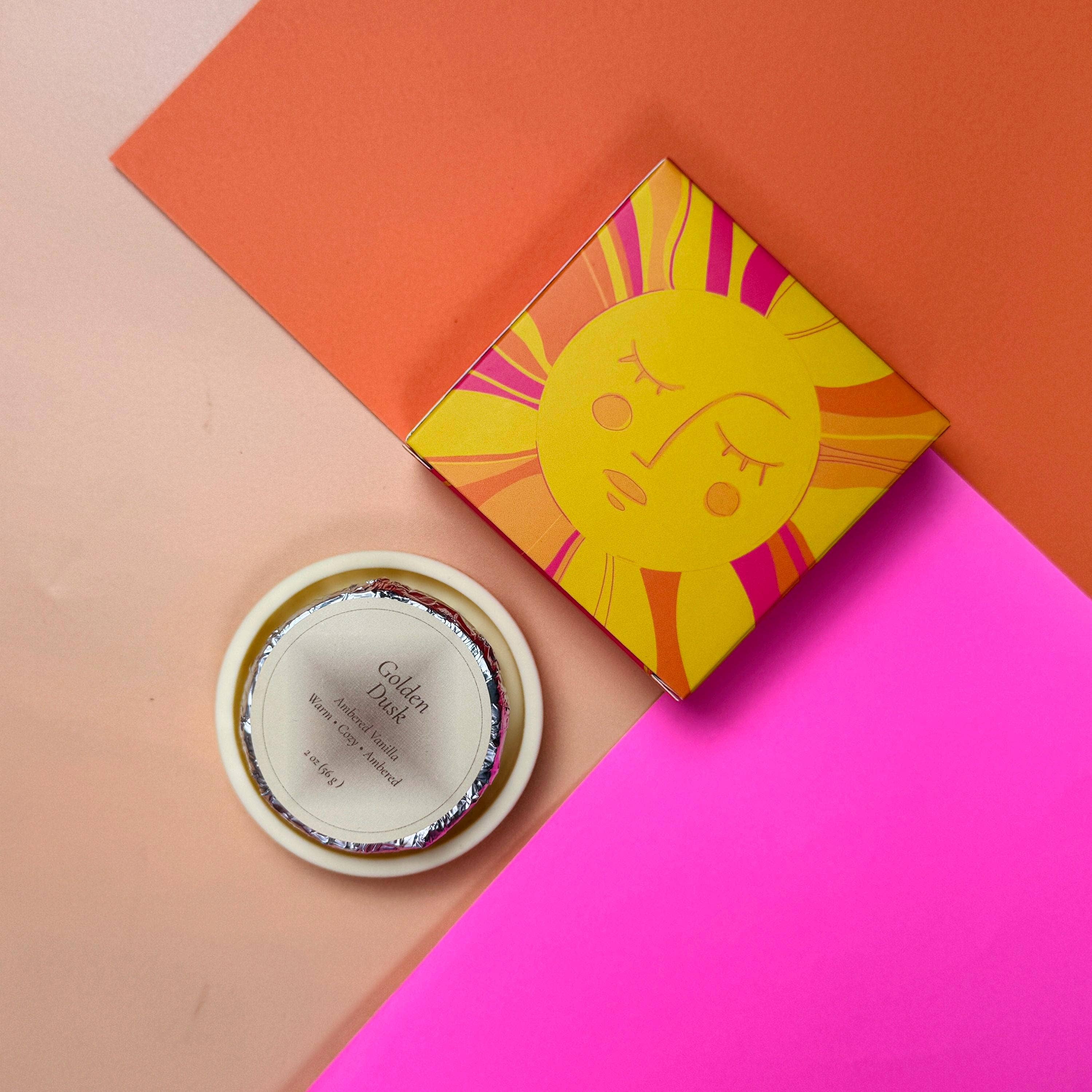 What you get: • 1 shower steamer 2 oz (56 g) • 1 shower steamer tray Ø 2.76" (7 cm) 🌙 Golden Dusk (Ambered Vanilla): Warm • Velvety • Comforting — ambered vanilla with a cozy, lingering glow.