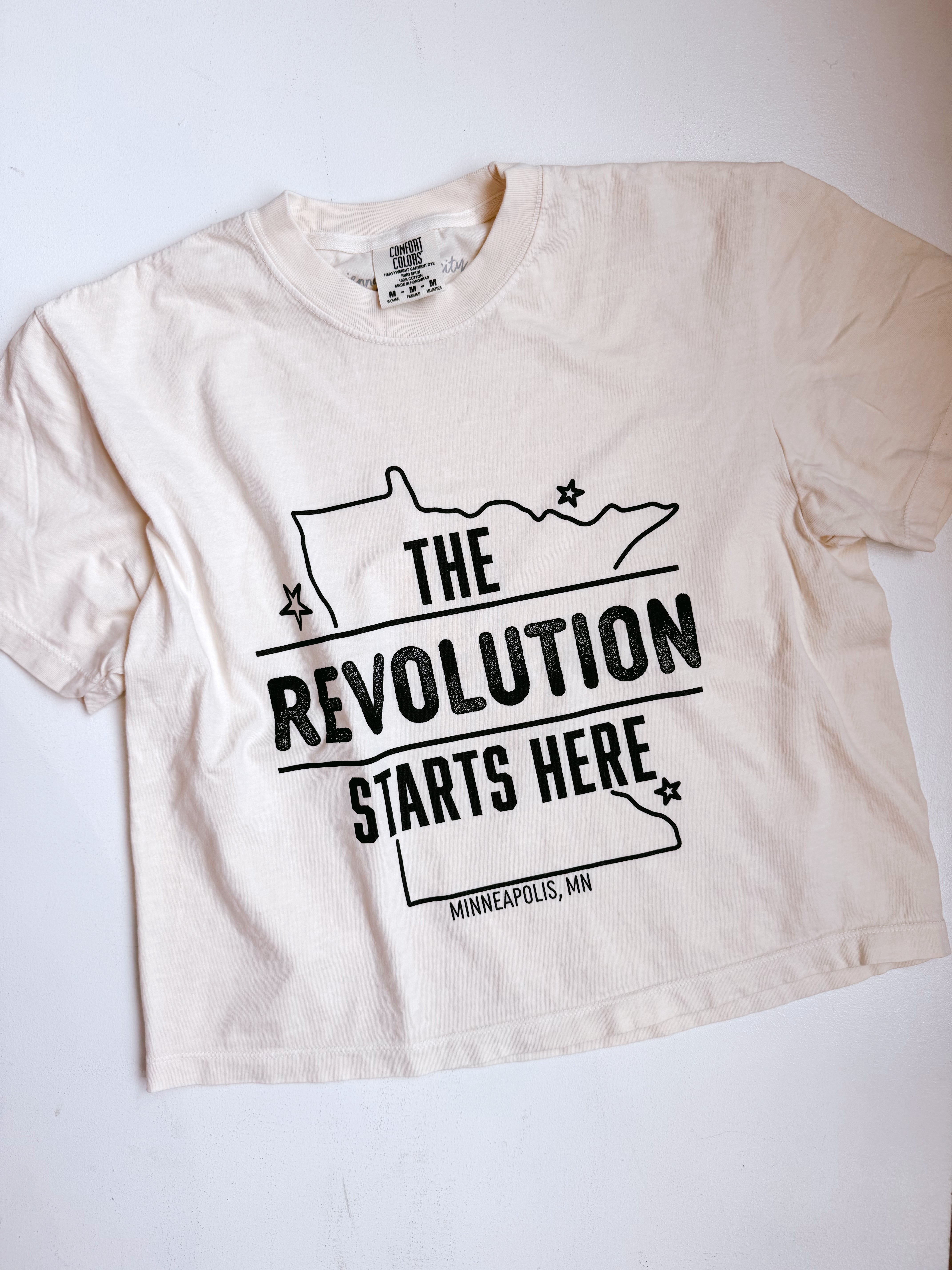 Our favorite boxy crop tee style in our newest in-house design. Support Minnesota and show solidarity! 15% of sales donated to local mutual aid funds.
