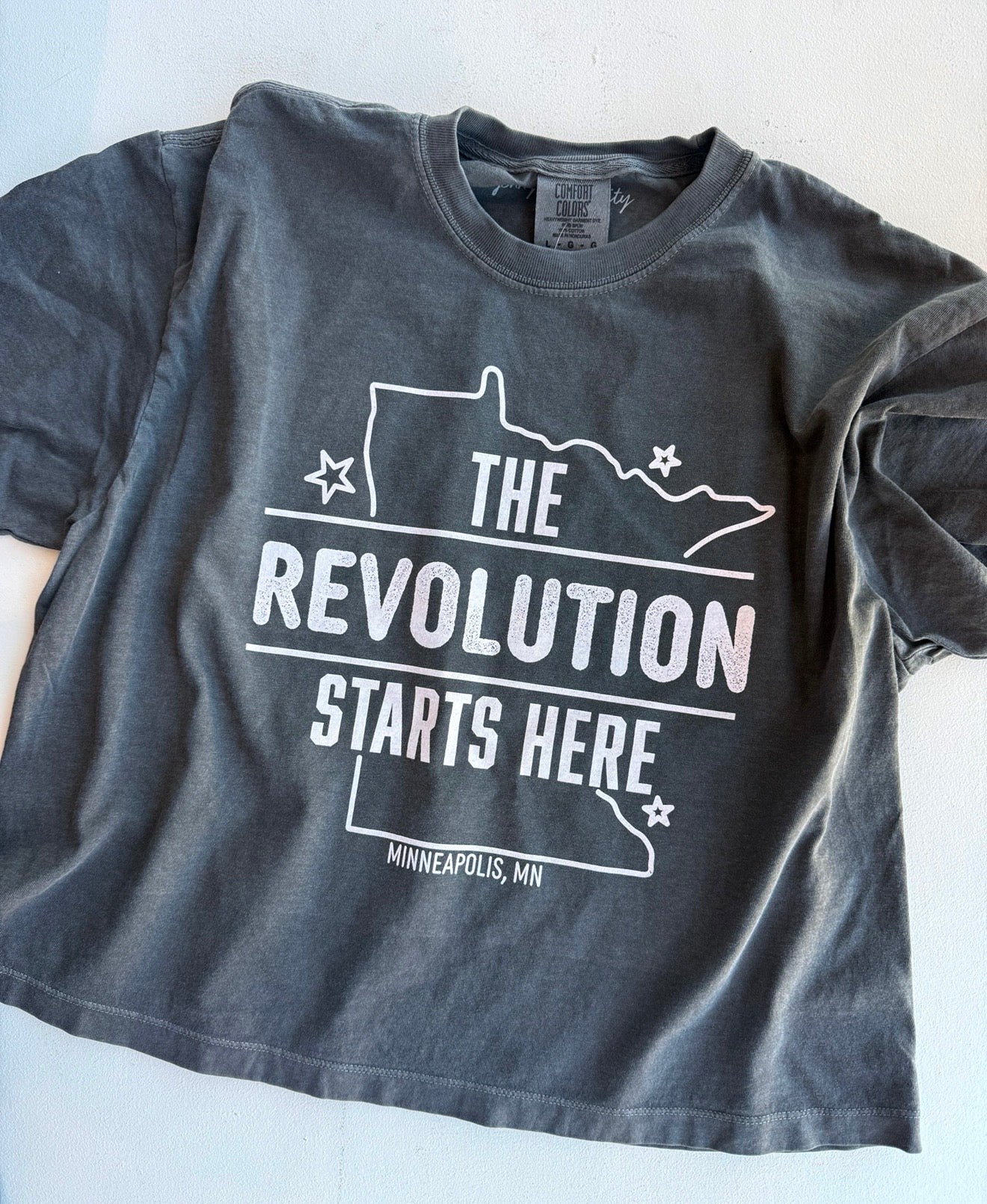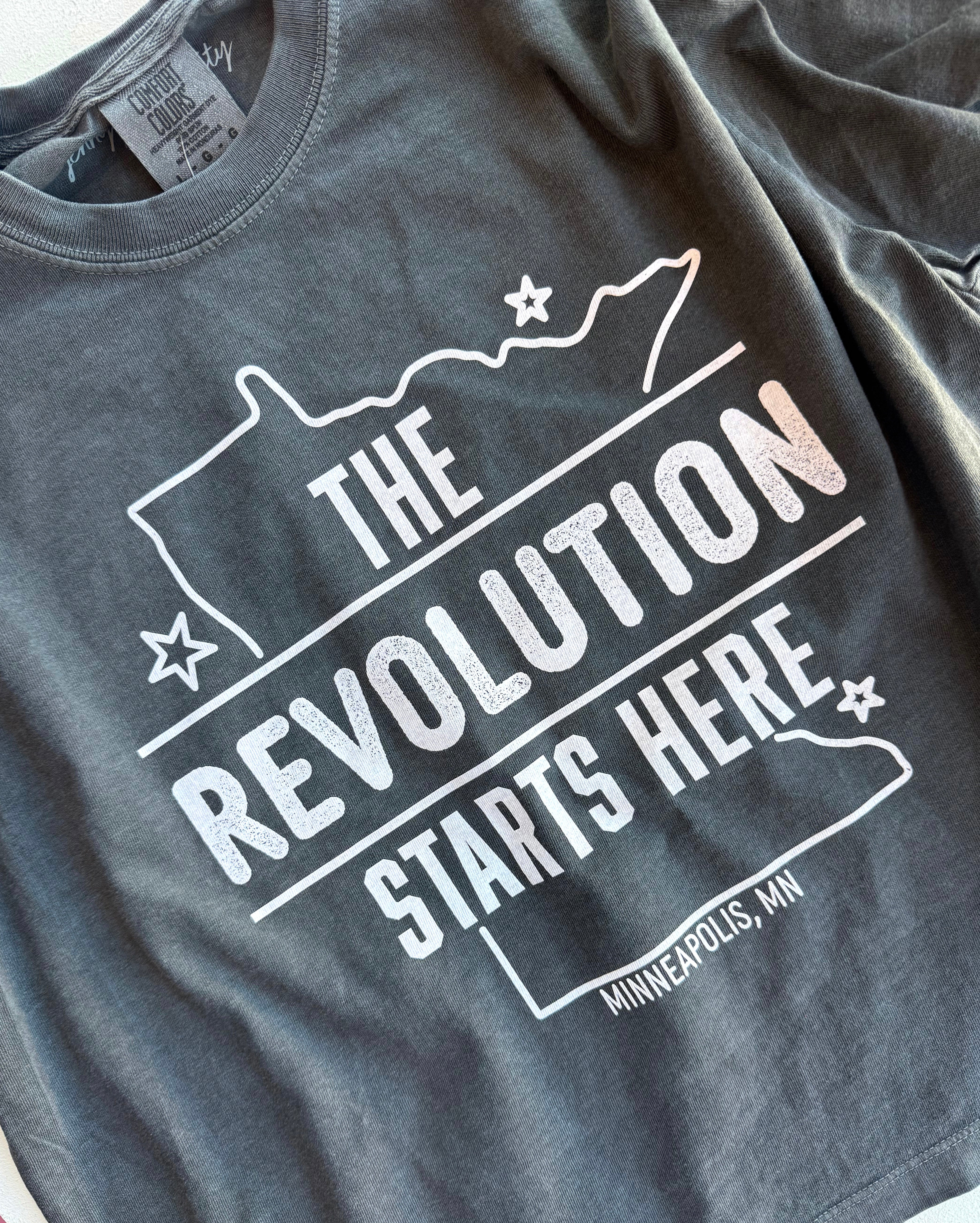 Our favorite boxy crop tee style in our newest in-house design. Support Minnesota and show solidarity! 15% of sales donated to local mutual aid funds.