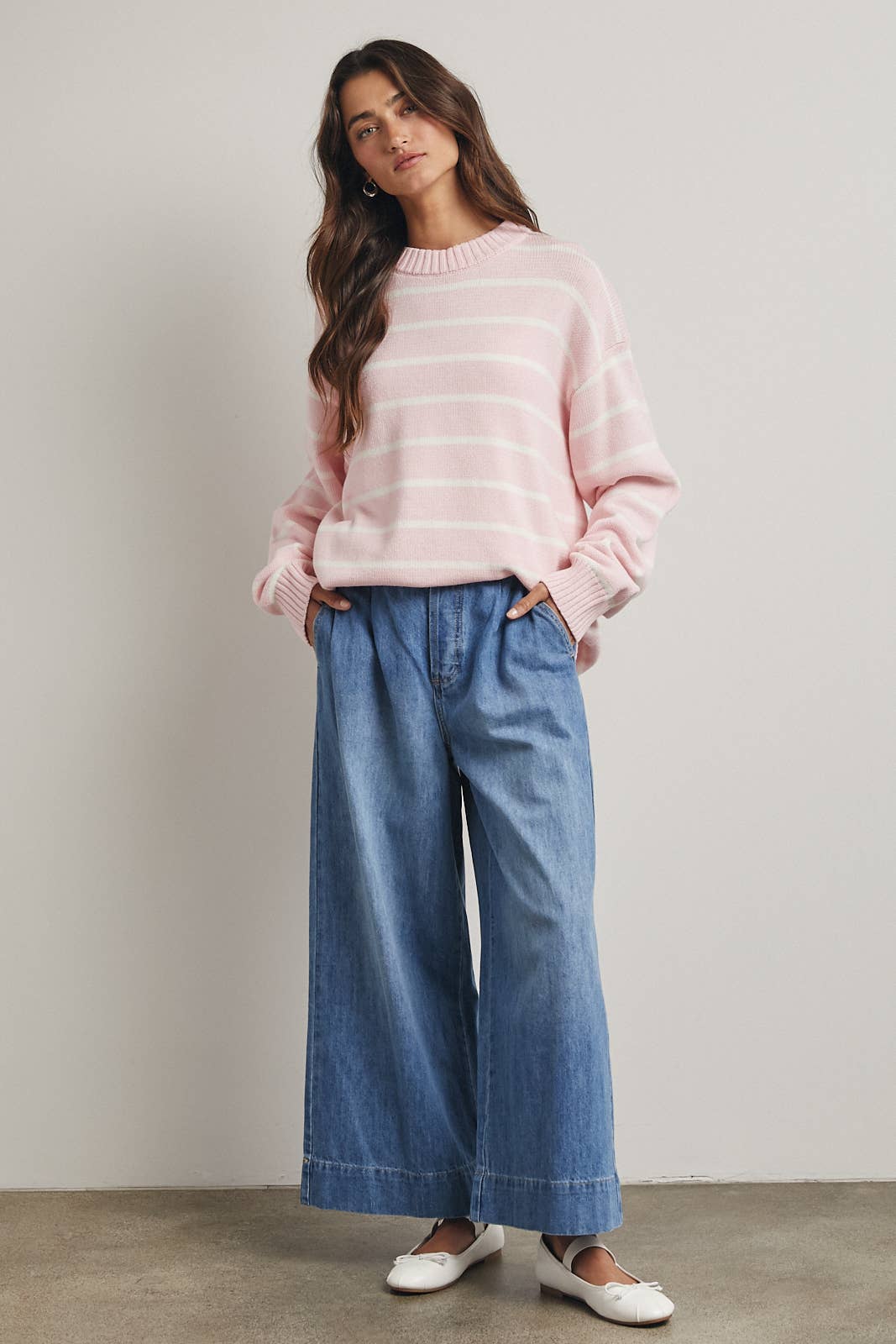 Striped Drop Shoulder Sweater // Ballet Pink - S is backordered and will ship as soon as it is back in stock.