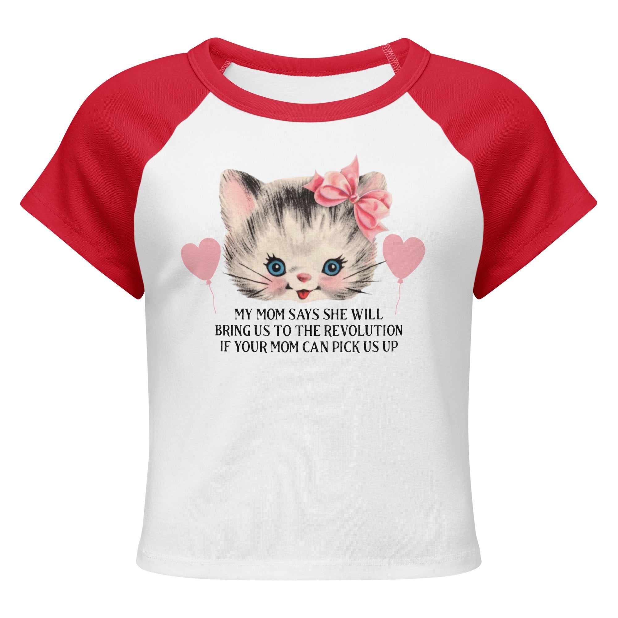 A playful revolution tee for the girls. Printed on a soft baseball inspired baby tee. Featuring a fitted cut, mid-length body, and soft ribbed texture. Designed by us!