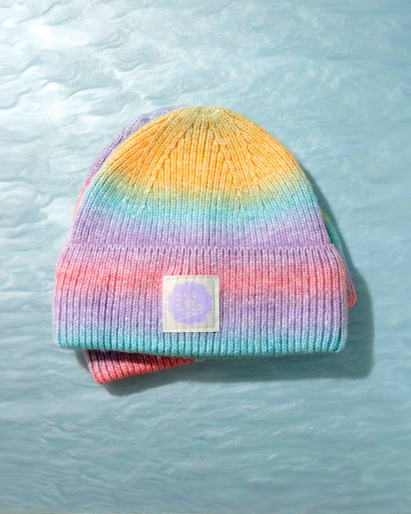 Brighten up chilly days with Daily Disco's Rainbow Ombre Beanie! This vibrant, eye-catching beanie features a seamless blend of rainbow colors, making each piece uniquely different. Crafted from a cozy and durable cotton-acrylic blend, it offers both comfort and style for any winter ensemble.