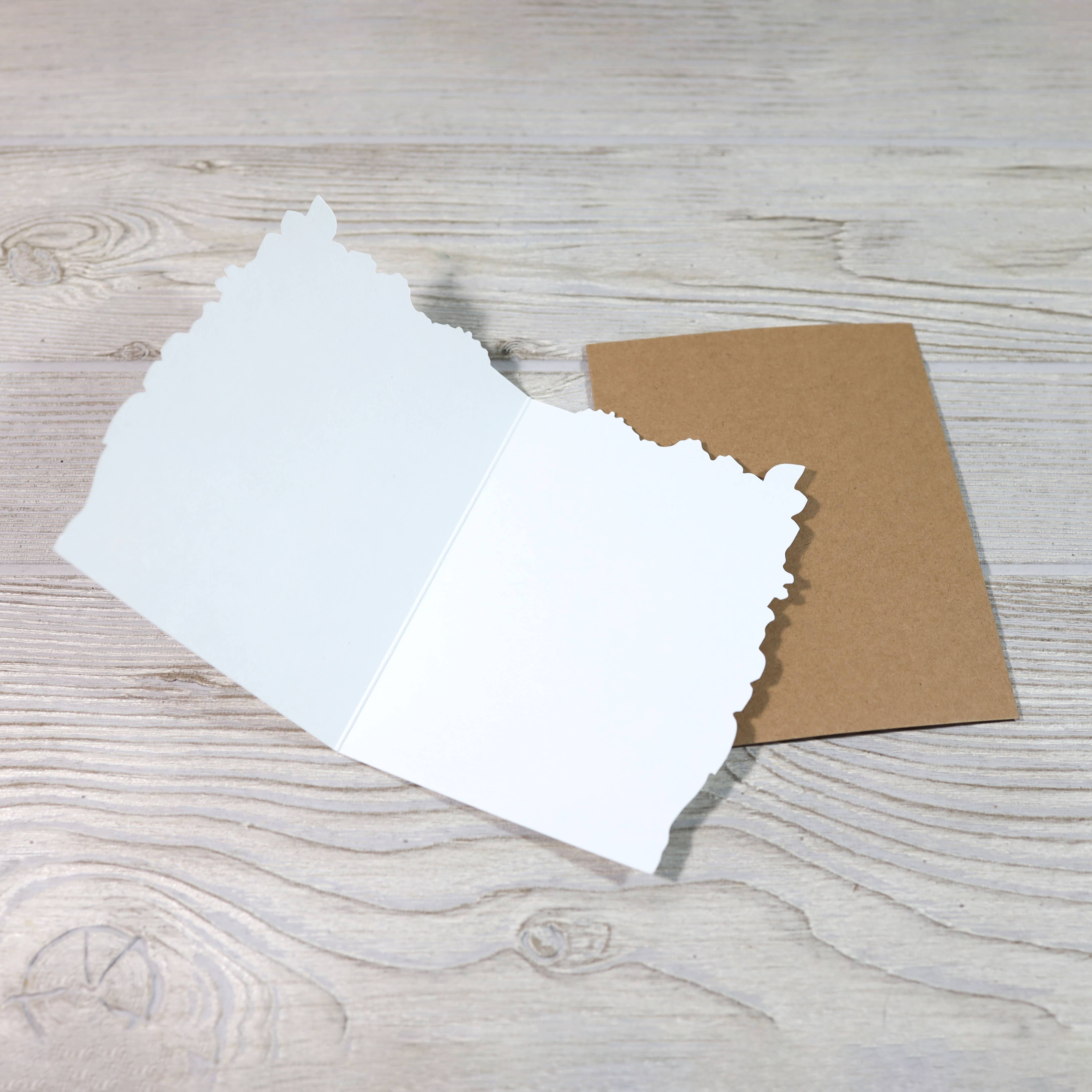 Details: • Premium quality, soft touch cardstock • Specialty die cut • Includes an A2 kraft envelope (4-3/8" x 5-3/4") • Blank inside • All cards are individually packaged in a cellophane sleeve 🇺🇸 Each card is printed in the USA.