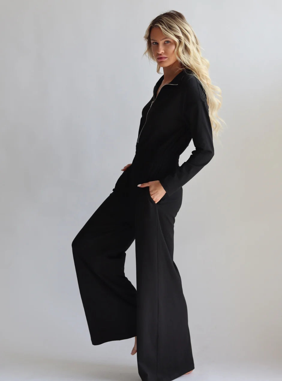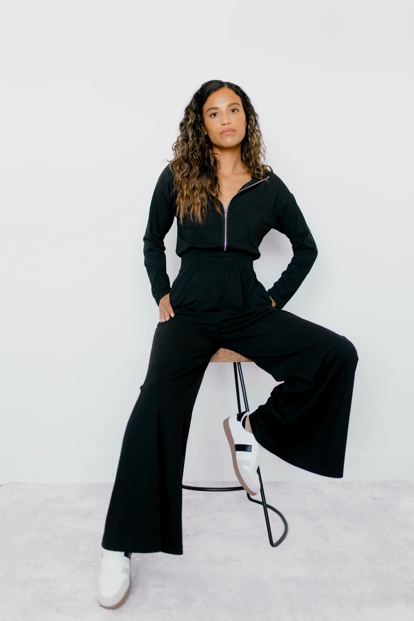 Meet Claire, your new wardrobe hero for those days when you crave ultimate comfort but still want to look put-together. Featuring a stylish collared zip front and an easy wide leg, Claire ensures a chic look while our signature brushed soft jersey fabric wraps you in endless comfort.