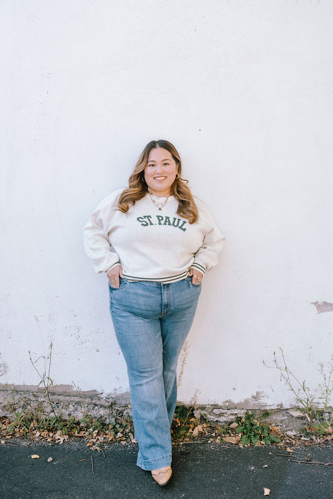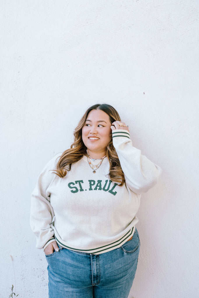 Rep your favorite city with this pullover knit raglan crew sweater. Featuring a varsity style pinstripe and mid-length relaxed raglan fit.