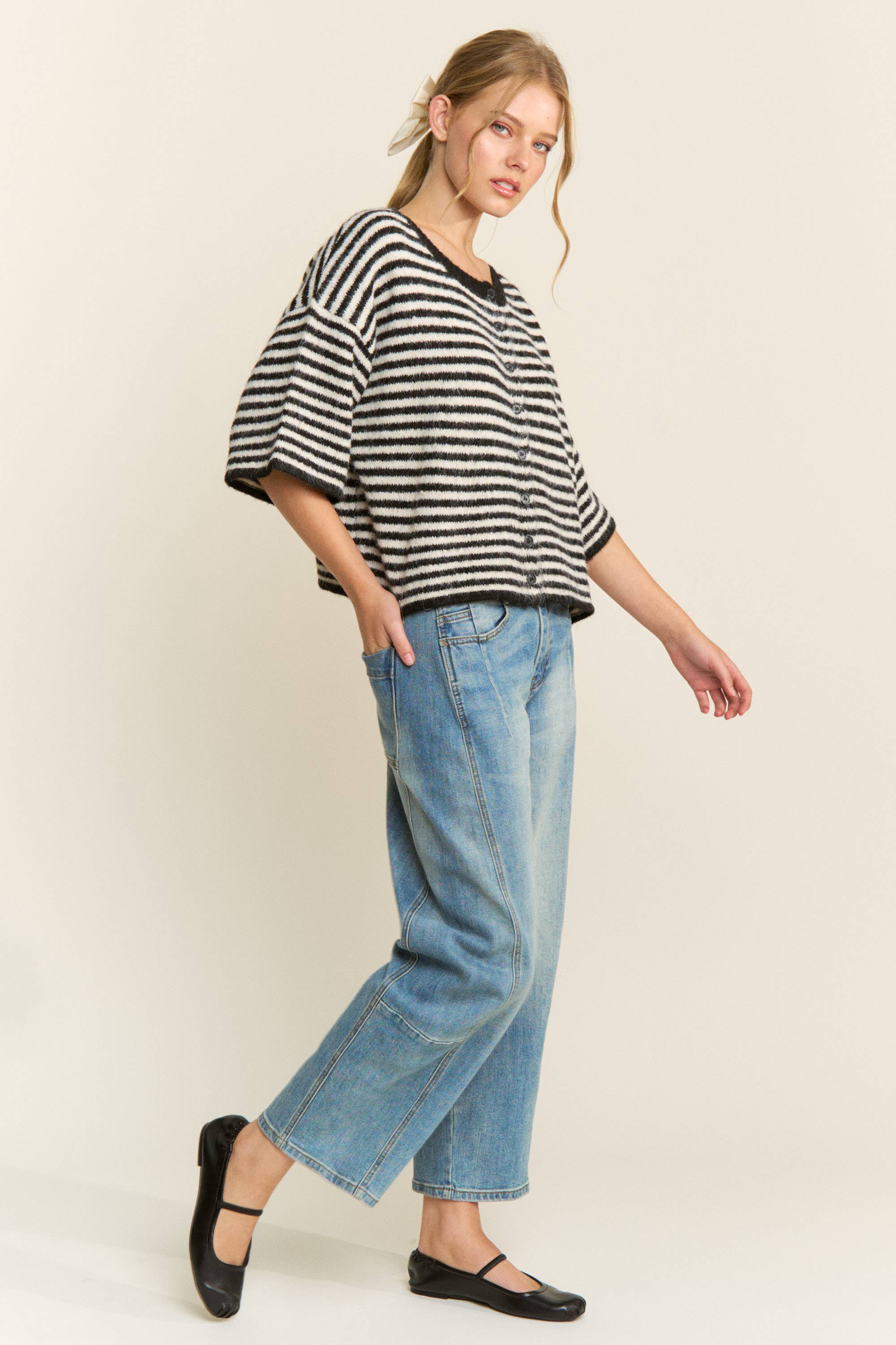 Lou Striped Soft Knit Cardigan // Black/Ivory