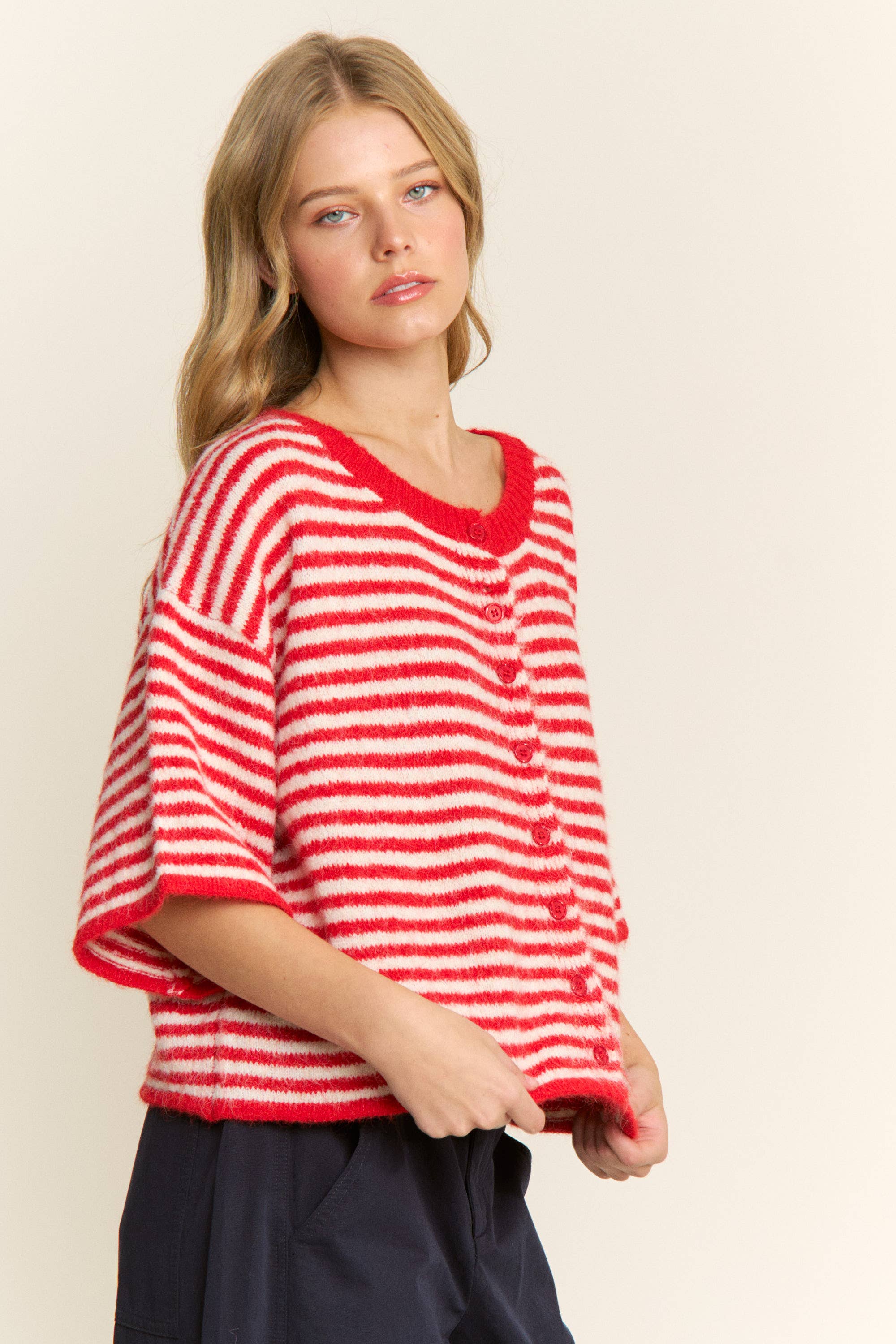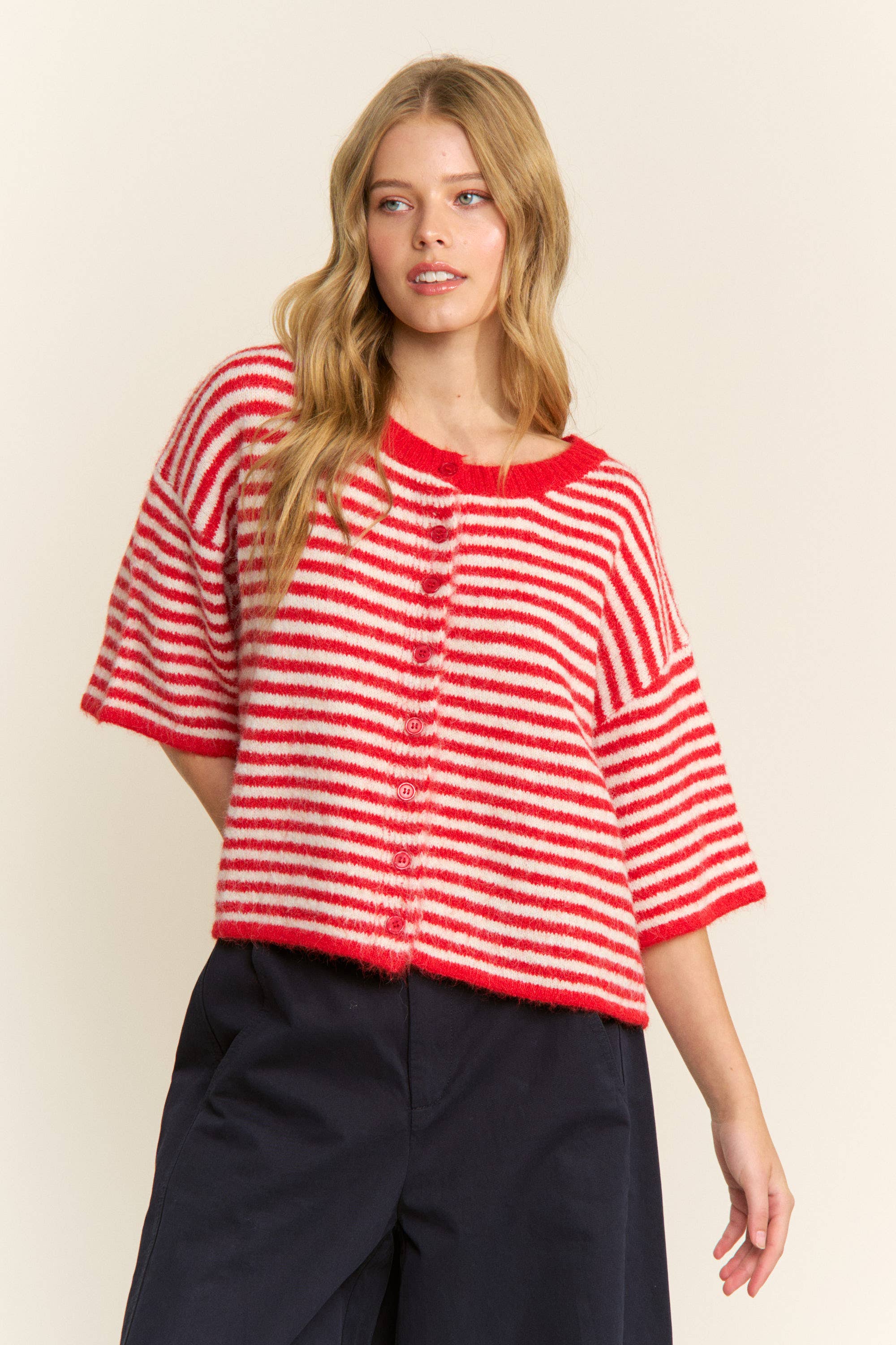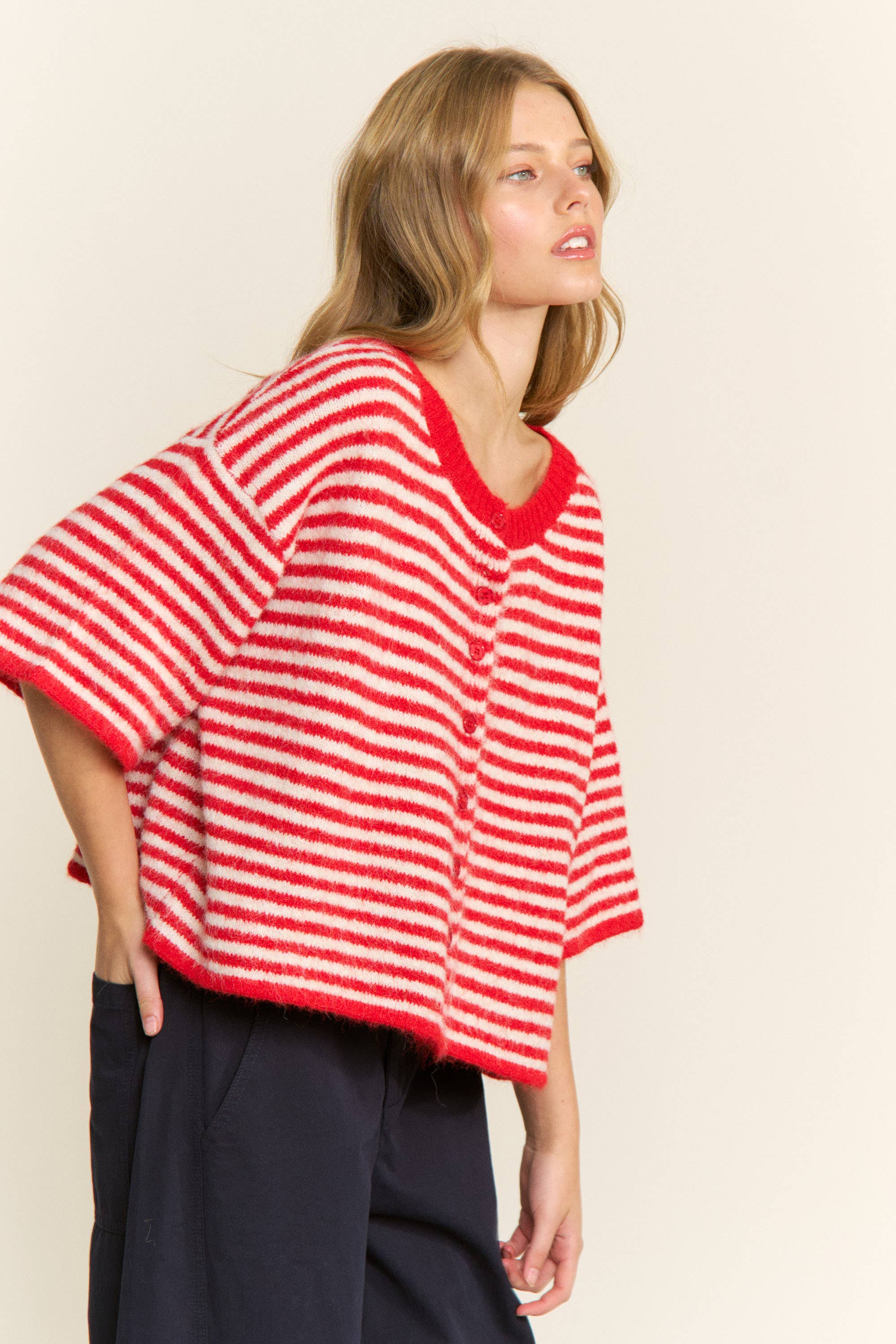 Lou Striped Soft Knit Cardigan // Red/Ivory