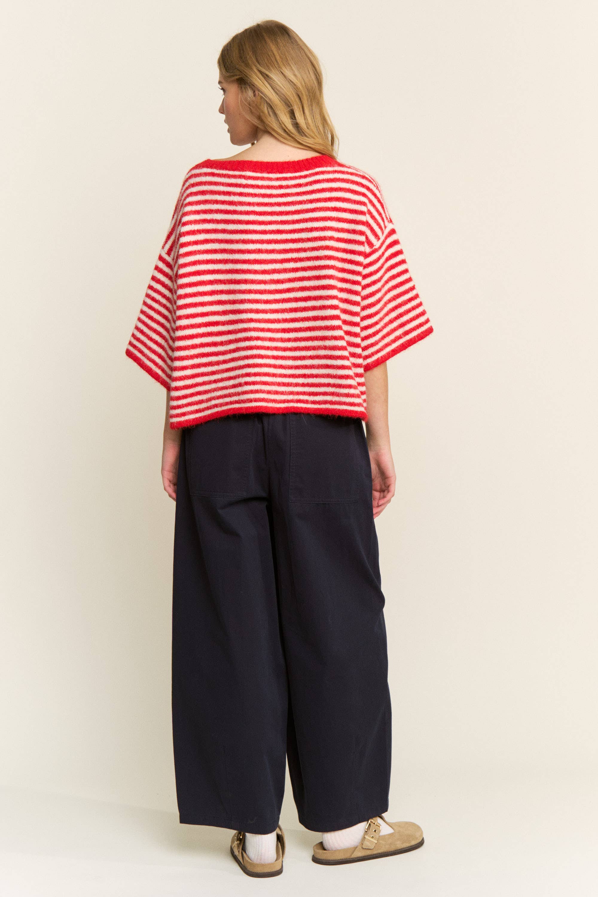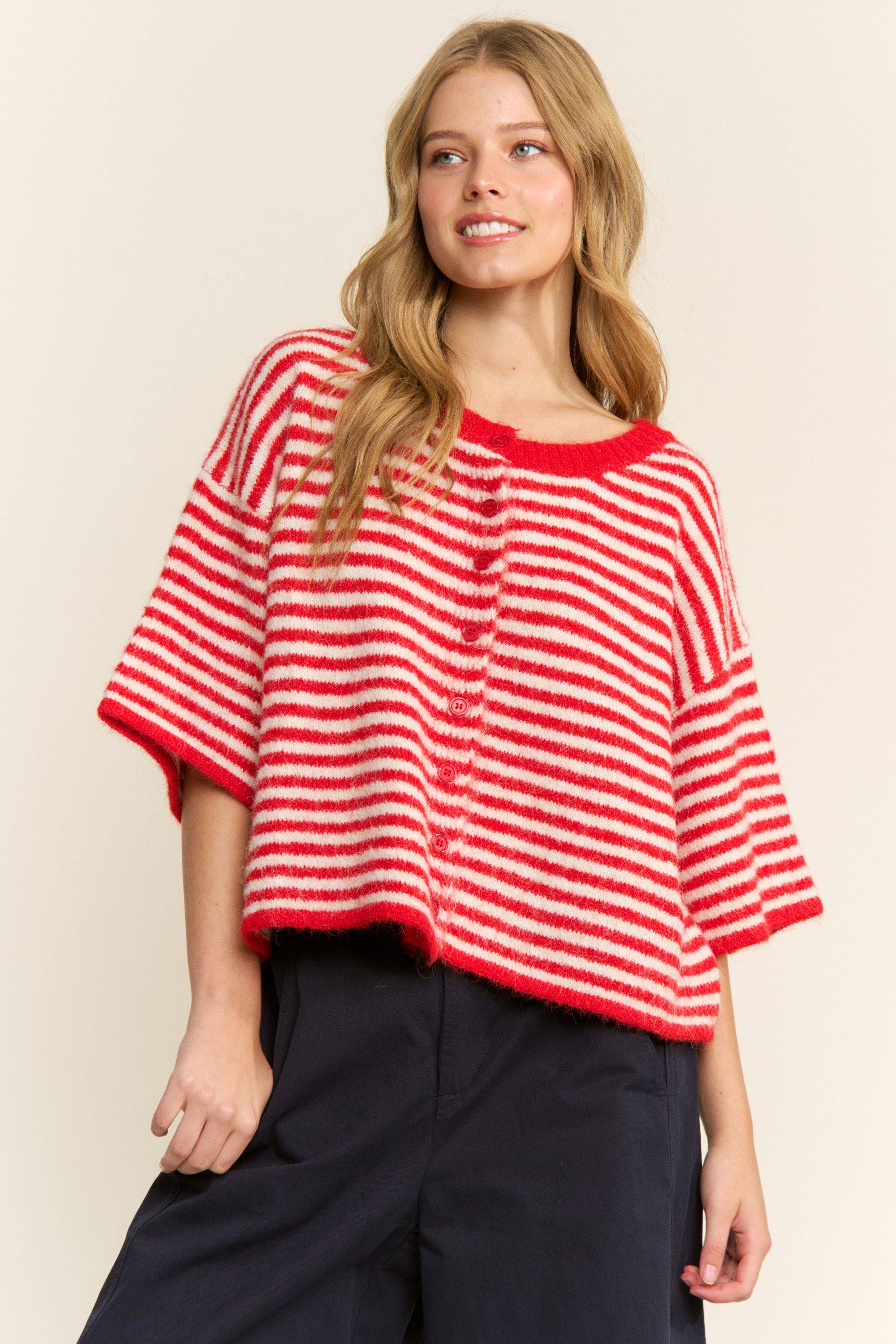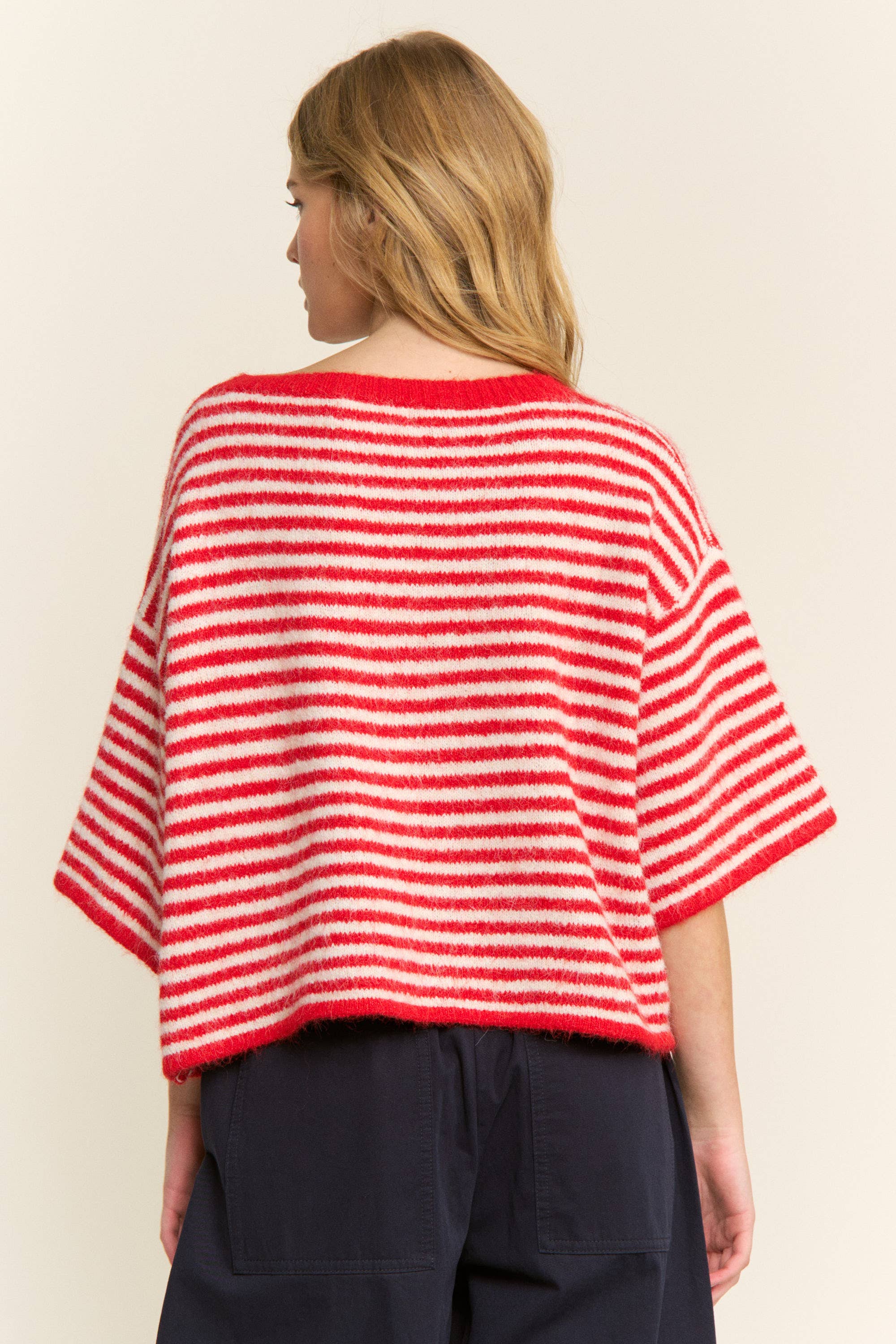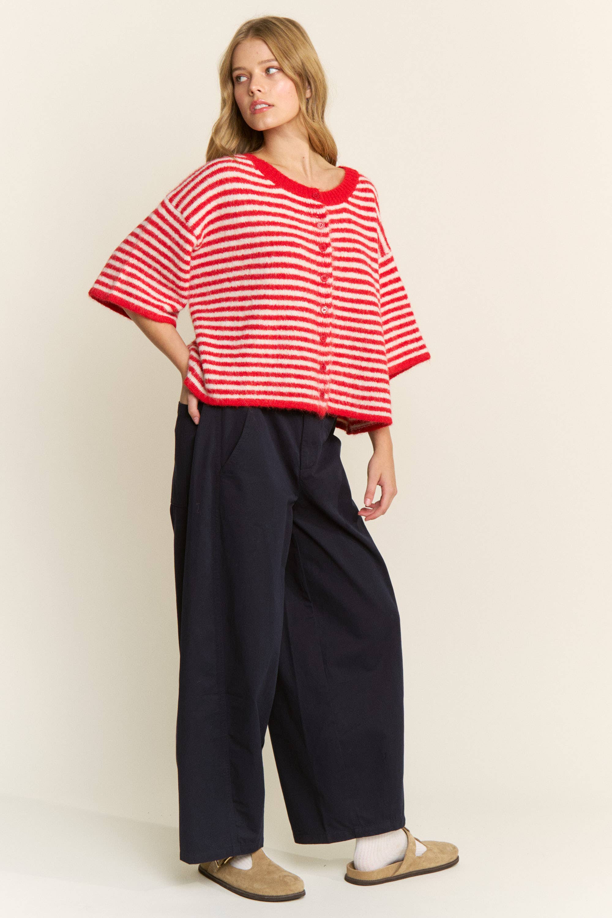 Lou Striped Soft Knit Cardigan // Red/Ivory