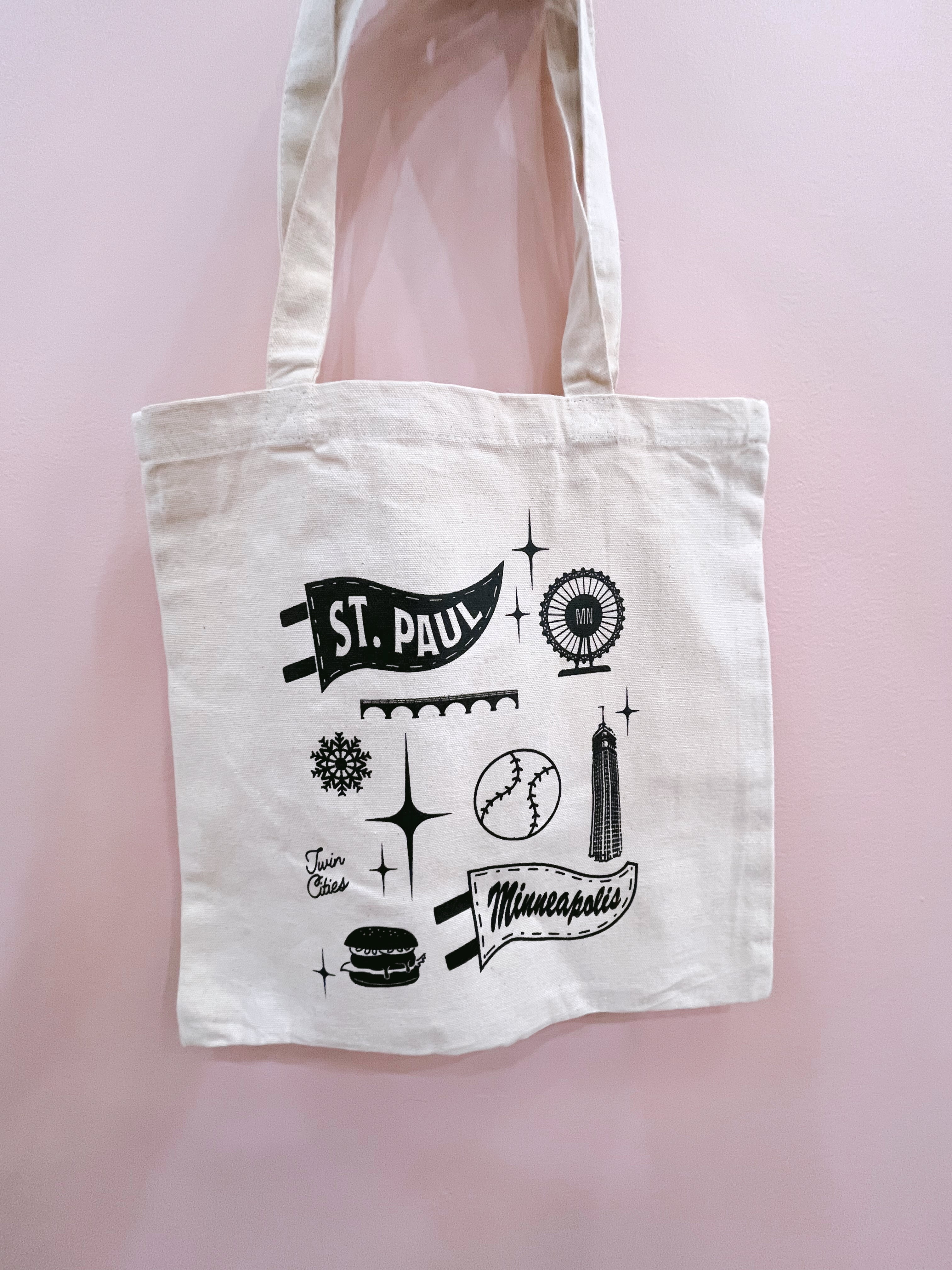 Take one of our original designs everywhere with you on this cute canvas tote! Printed locally in St. Paul, MN.