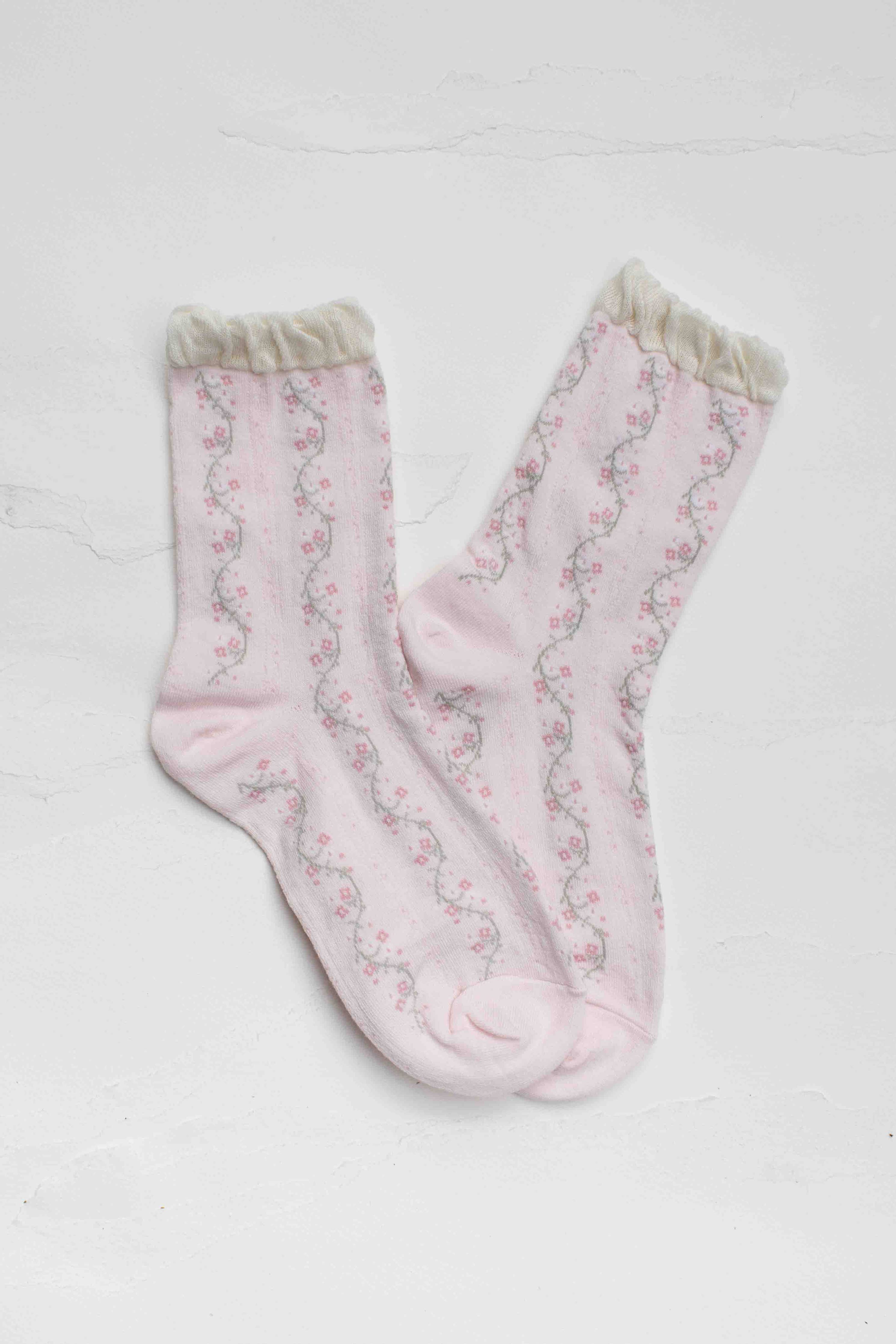 Vintage Floral Vine Socks // Pink
