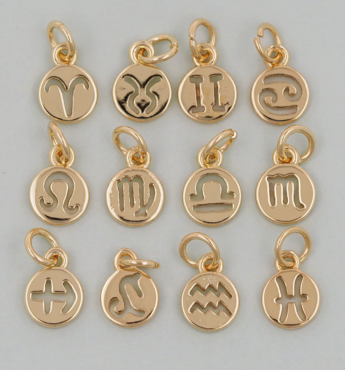 Small zodiac gold charms for the charm bar! Sold as single units.